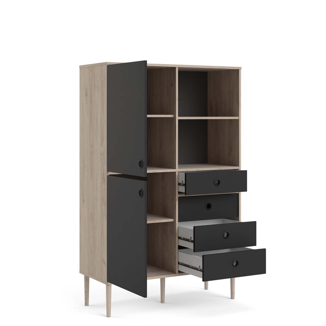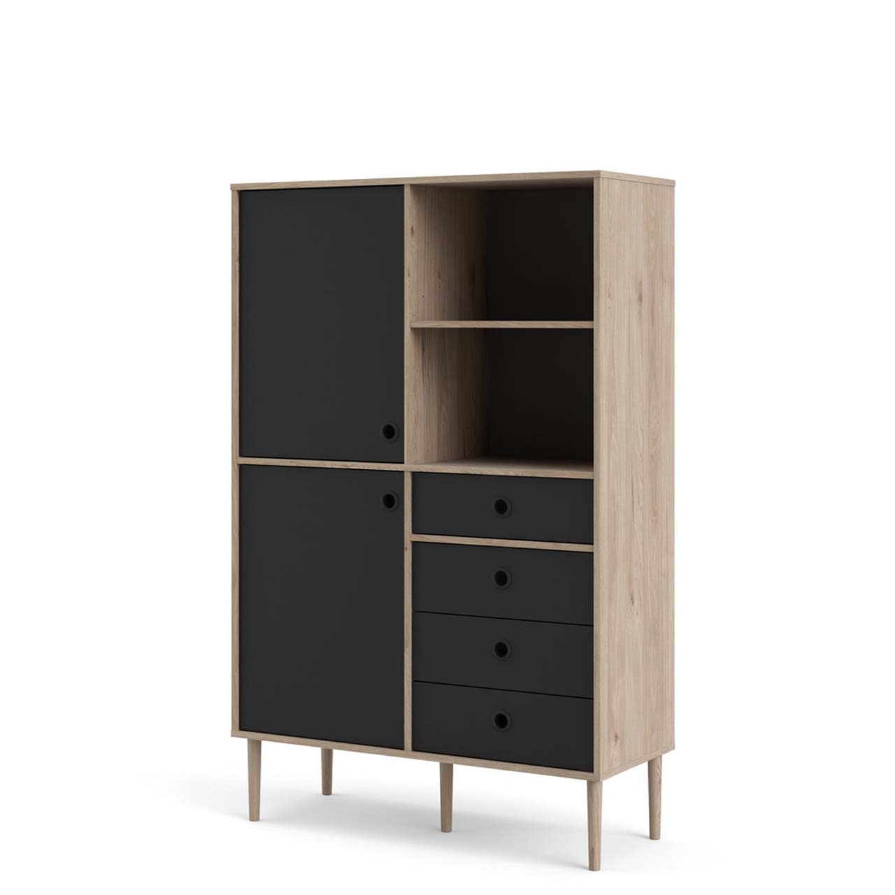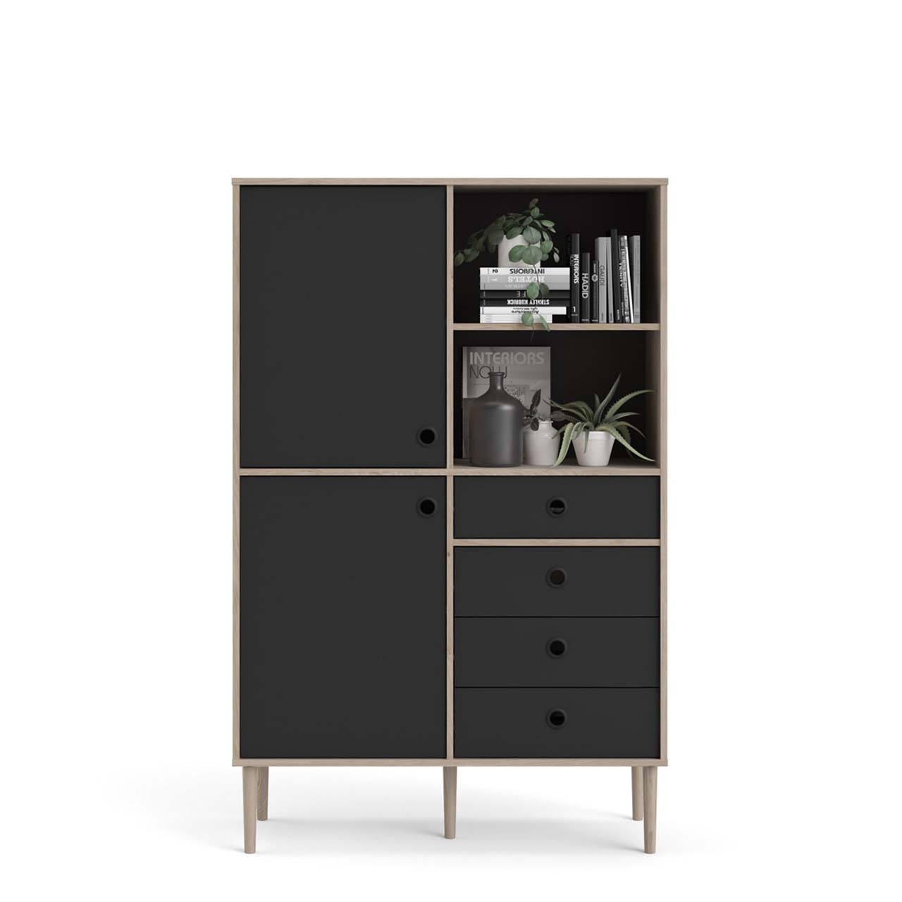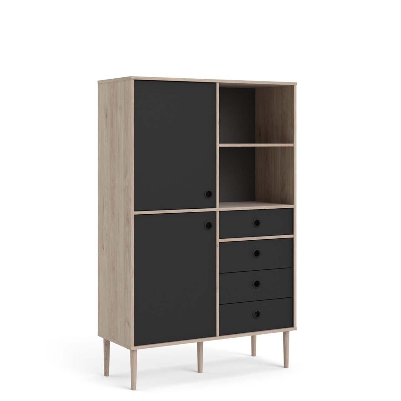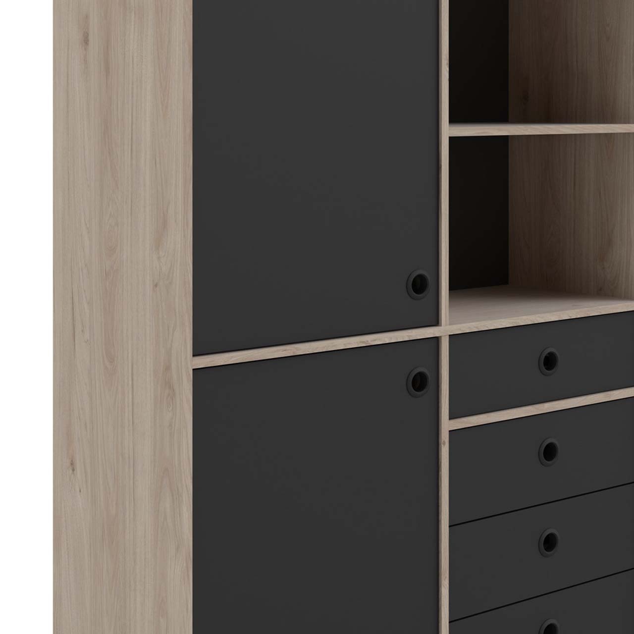 tom Penny wandkast 2 deuren, 4 laden en 2 vakken Hickory decor en mat zwart.