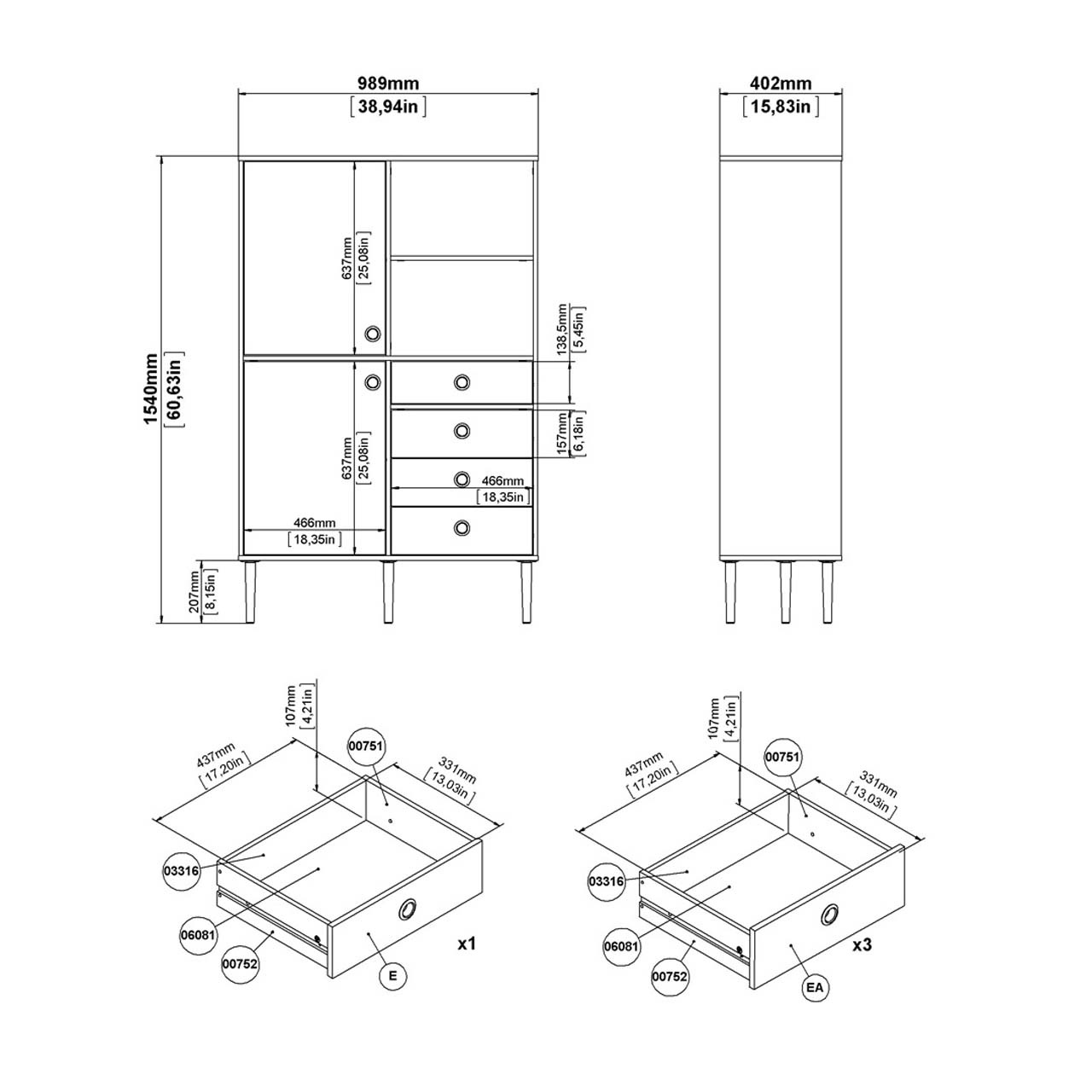 Productafmetingen: Breedte: 99 cm Diepte: 41 cm Hoogte: 154 cm