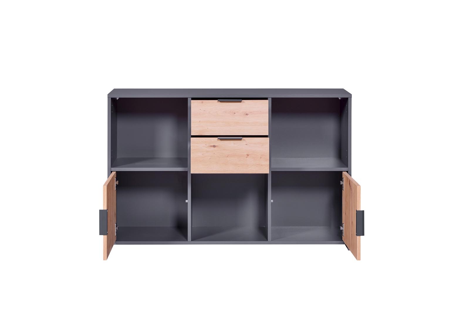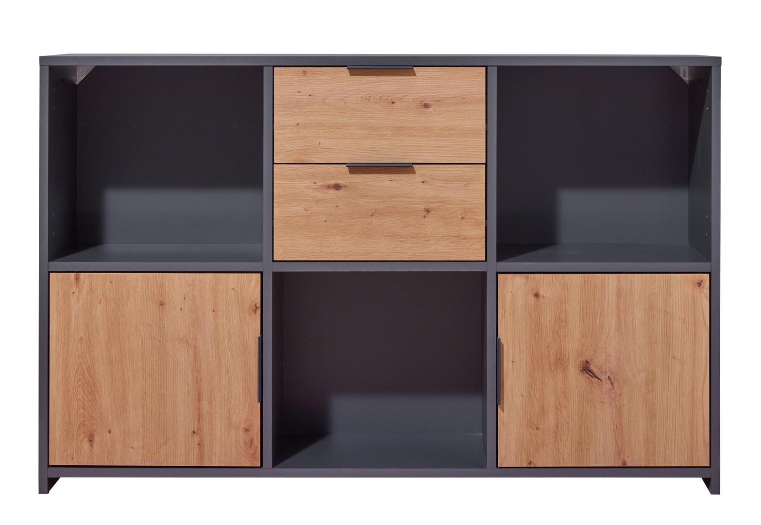 ebuy24 Pepeto dressoir 2 laden, 2 deuren, 3 planken grijs, Artisan eik decor.