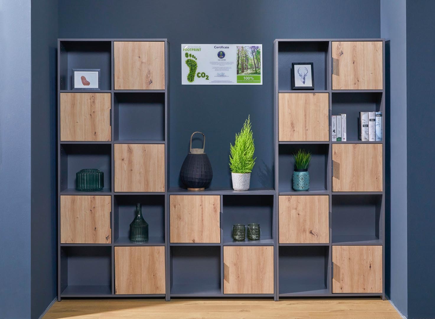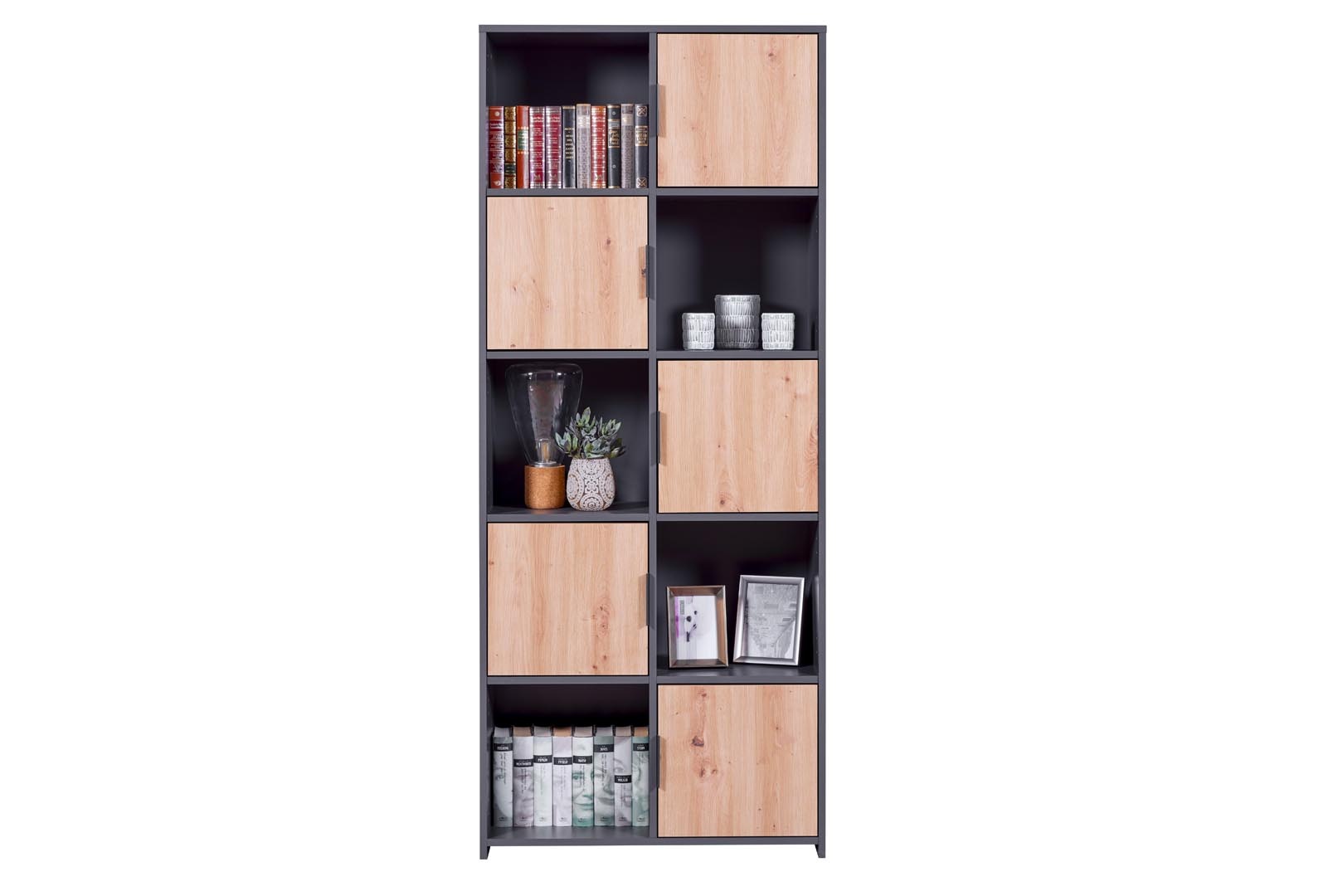 ebuy24 Pepeto wandkast 5 deuren, 5 planken grijs, Artisan eik decor.