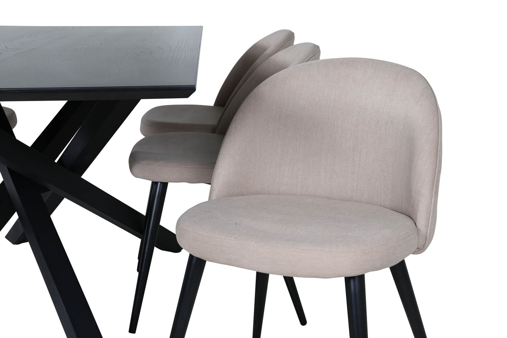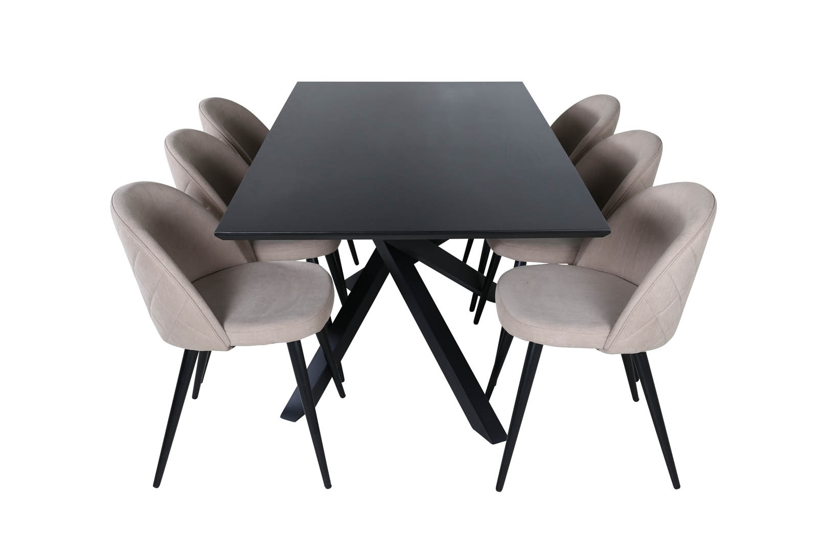 ebuy24 PiazzaBLBL eethoek eetkamertafel zwart en 6 Velvet Stitches eetkamerstoel beige.