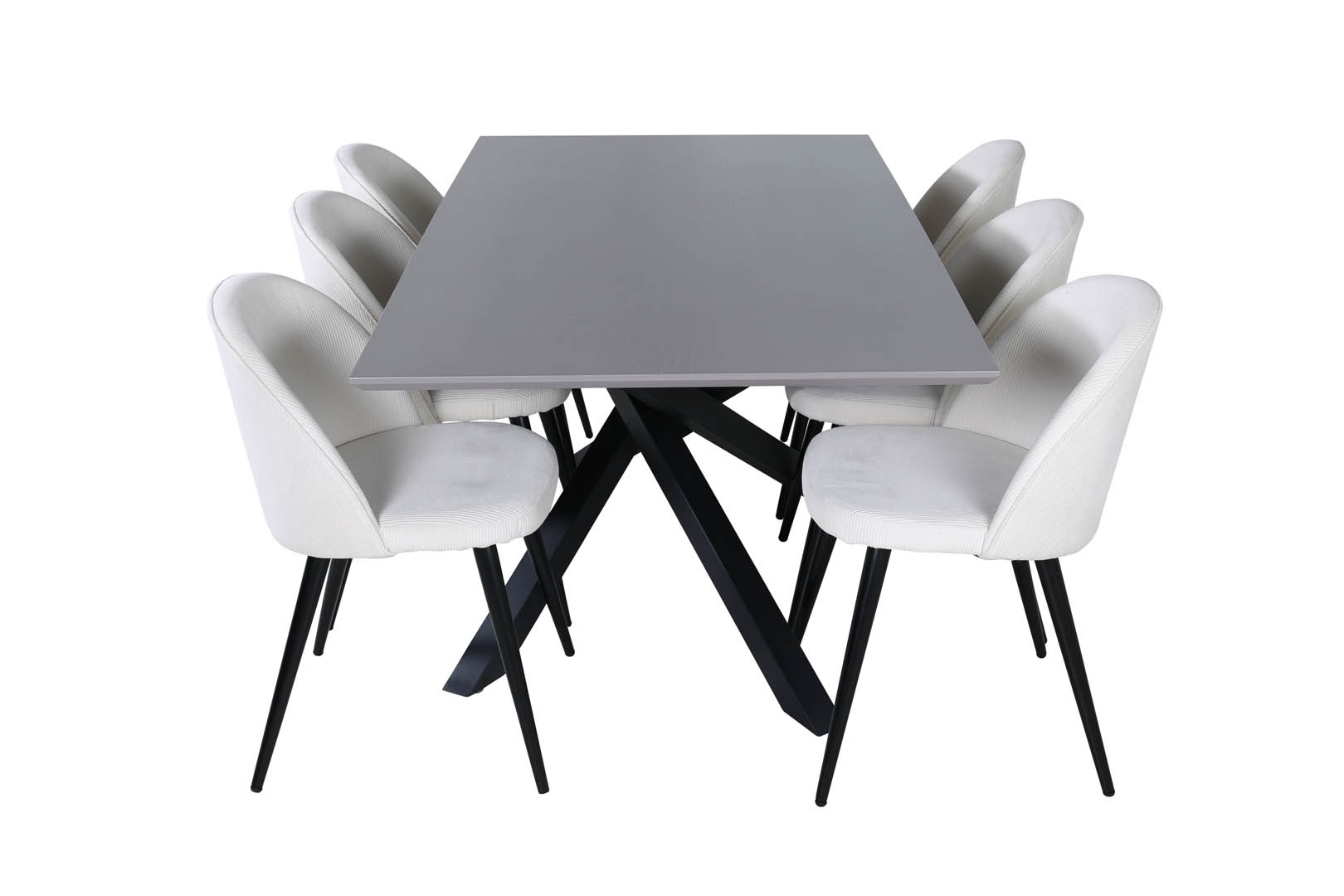 ebuy24 PiazzaGRBL eethoek eetkamertafel grijs en 6 Velvet eetkamerstoel fluweel beige, zwart.