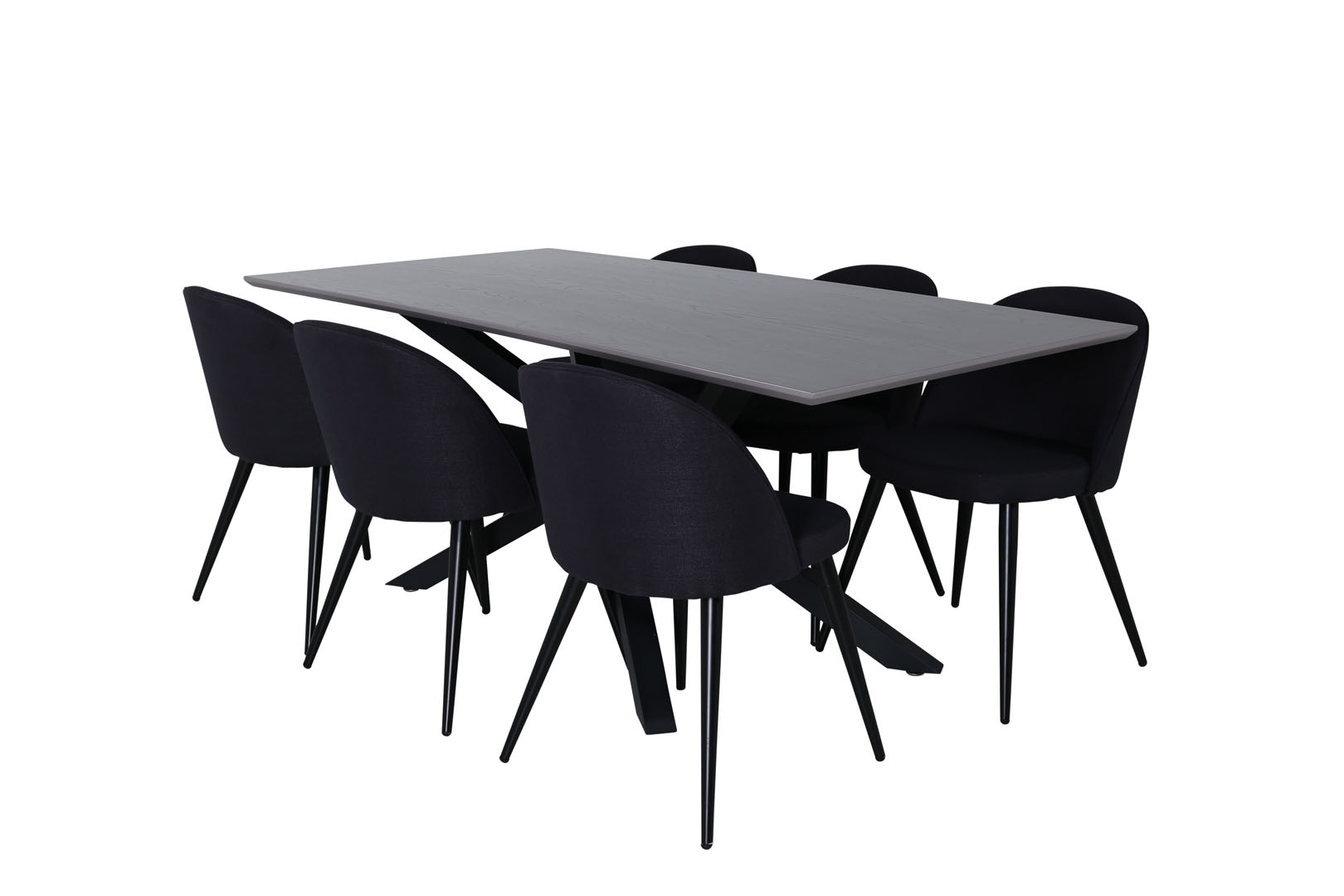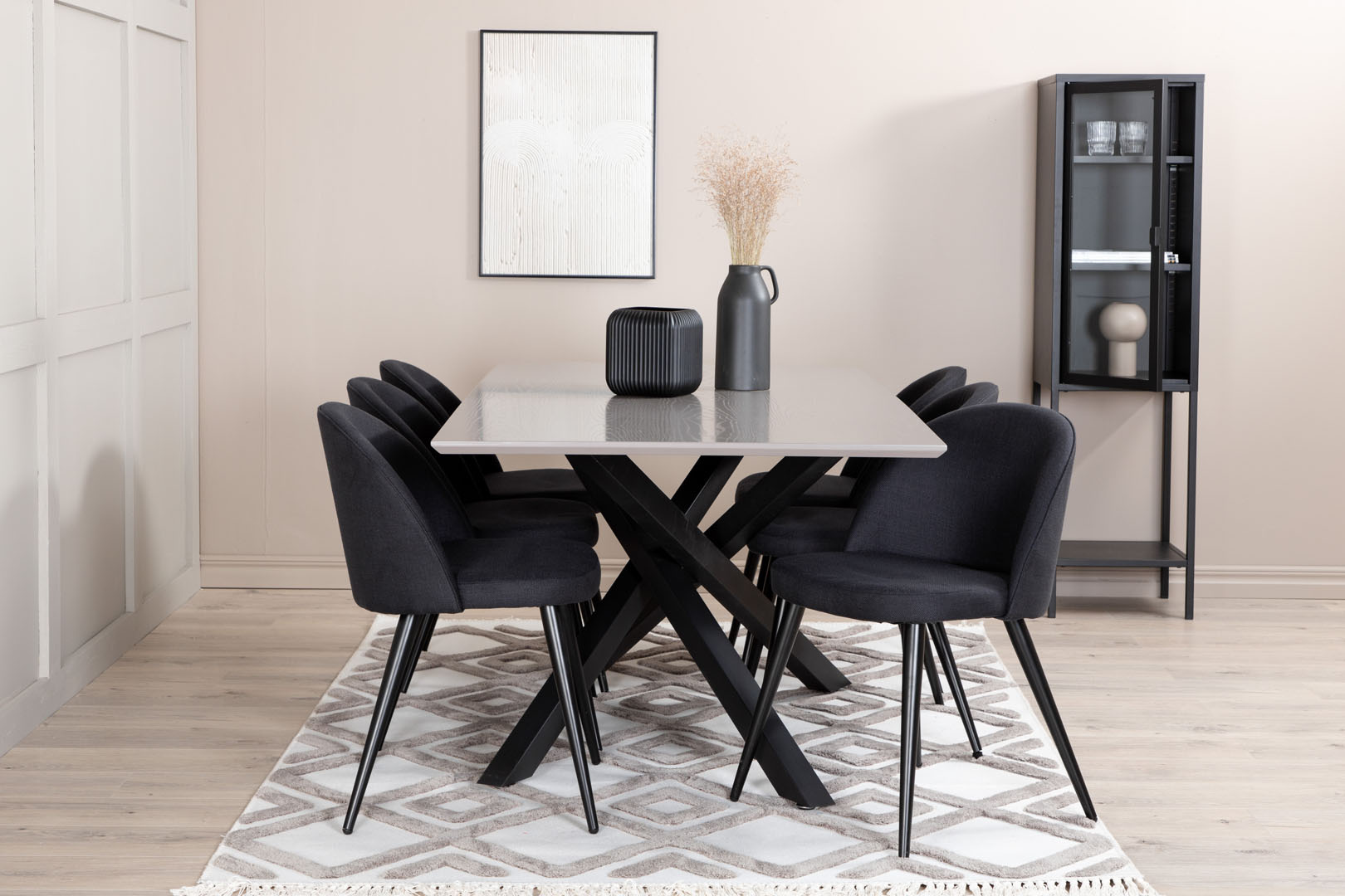 ebuy24 PiazzaGRBL eethoek eetkamertafel grijs en 6 Velvet eetkamerstoel zwart.