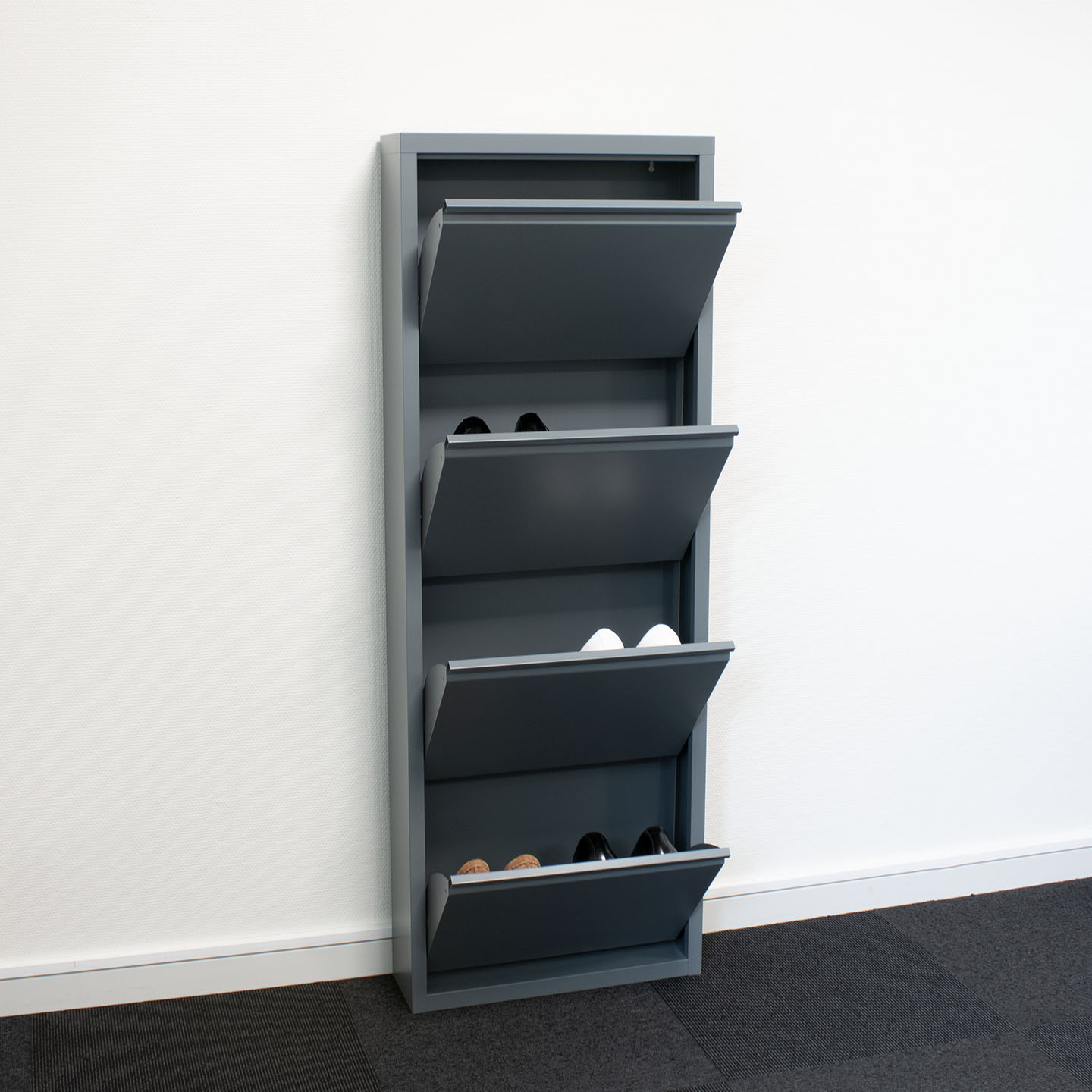 Pisa schoenenkast grijs metaal met 8 vakken. Ral 7031 grijs. Lade binnen: B46/L29/D13 cm. Kan op de grond worden geplaatst of aan de muur worden gehangen. Individueel te gebruiken. Deuren gaan tegelijk open. Je ontvangt meubels van een goede kwaliteit met een aangenaam comfort, gemaakt in een stijlvol en mooi design. Onze meubels zijn zeer aantrekkelijk geprijsd. Creëer uw eigen persoonlijke stijl met een nieuw meubel. Combineer met kleinmeubels of een paar mooie woonaccessoires. Hier verkrijg je de nieuwe woningtrends, zoals je ze in tijdschriften en magazines ziet. Bij ons vindt u unieke, praktische en comfortabele meubels met elk zijn eigen, mooi en apart design.