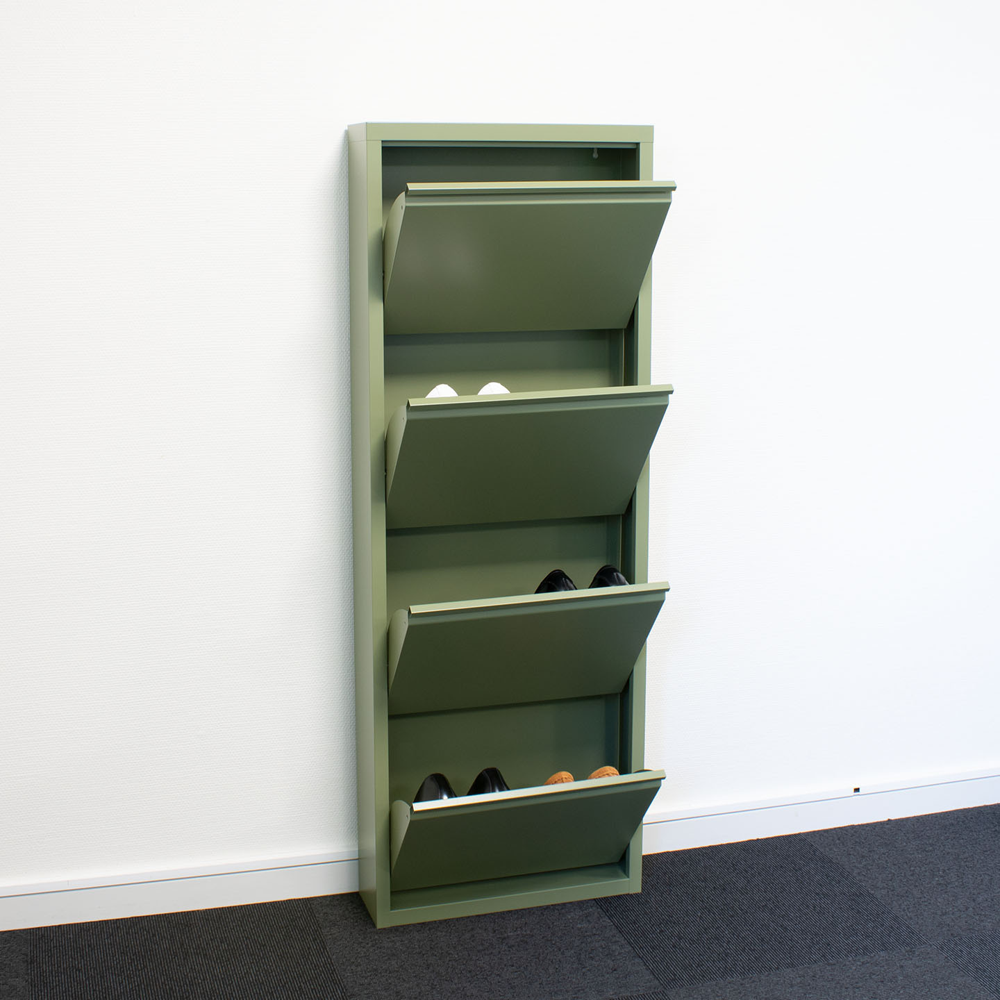 Pisa schoenenkast groen metaal met 8 vakken. Ral 6013 groen. Lade binnen: B46/L29/D13 cm. Kan op de grond worden geplaatst of aan de muur worden gehangen. Individueel te gebruiken. Deuren gaan tegelijk open. Je ontvangt meubels van een goede kwaliteit met een aangenaam comfort, gemaakt in een stijlvol en mooi design. Onze meubels zijn zeer aantrekkelijk geprijsd. Creëer uw eigen persoonlijke stijl met een nieuw meubel. Combineer met kleinmeubels of een paar mooie woonaccessoires. Hier verkrijg je de nieuwe woningtrends, zoals je ze in tijdschriften en magazines ziet. Bij ons vindt u unieke, praktische en comfortabele meubels met elk zijn eigen, mooi en apart design.