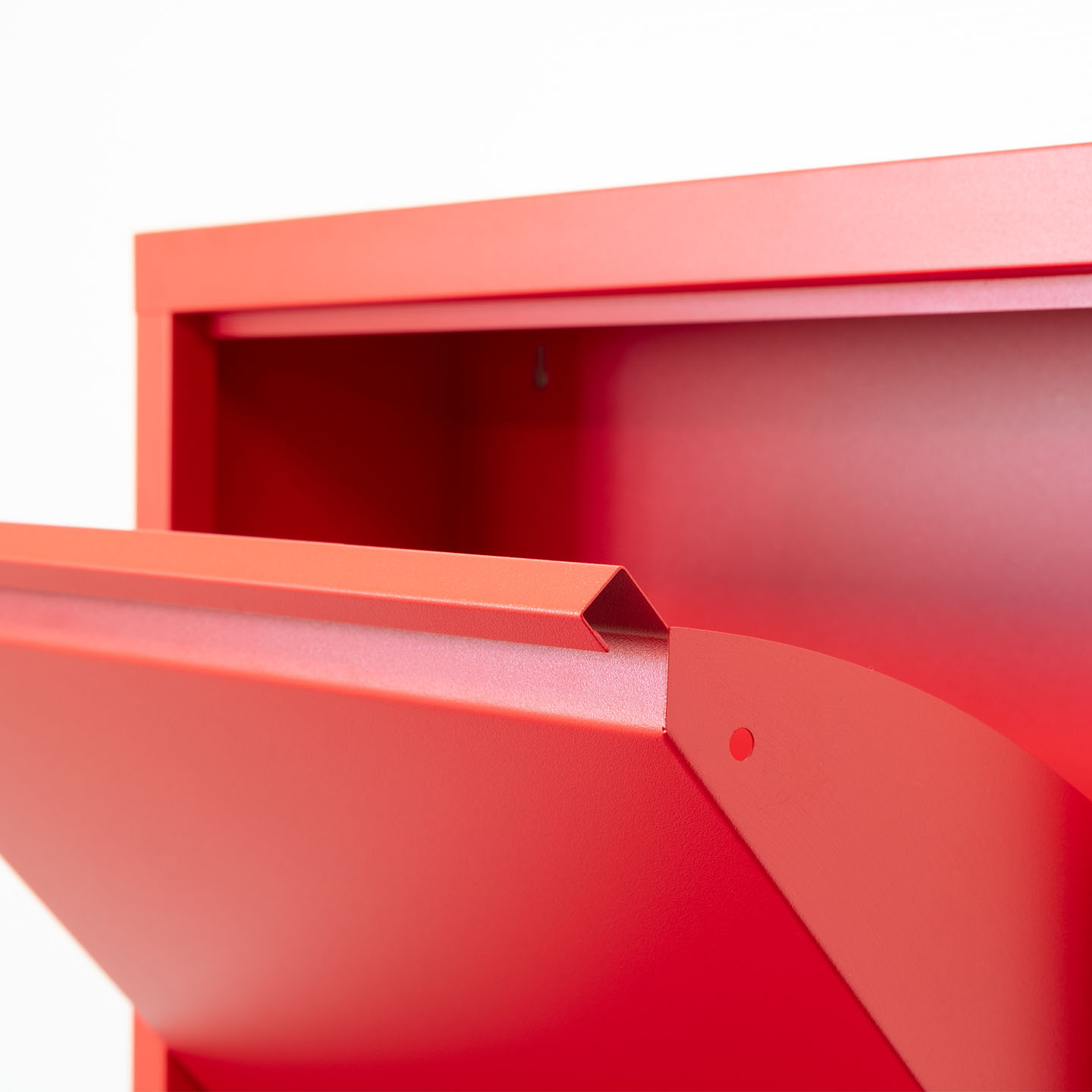 Pisa schoenenkast rood metaal met 12 vakken. Ral 3020 rood. Lade binnen: B46/L29/D13 cm. Kan op de grond worden geplaatst of aan de muur worden gehangen. Individueel te gebruiken. Deuren gaan tegelijk open. Je ontvangt meubels van een goede kwaliteit met een aangenaam comfort, gemaakt in een stijlvol en mooi design. Onze meubels zijn zeer aantrekkelijk geprijsd. Creëer uw eigen persoonlijke stijl met een nieuw meubel. Combineer met kleinmeubels of een paar mooie woonaccessoires. Hier verkrijg je de nieuwe woningtrends, zoals je ze in tijdschriften en magazines ziet. Bij ons vindt u unieke, praktische en comfortabele meubels met elk zijn eigen, mooi en apart design.