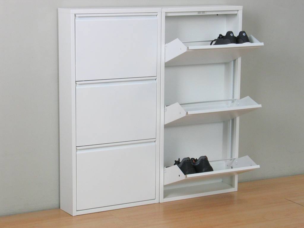 Belangrijkste kenmerken Pisa schoenenkast wit metaal met 3 vakken - set van 2: