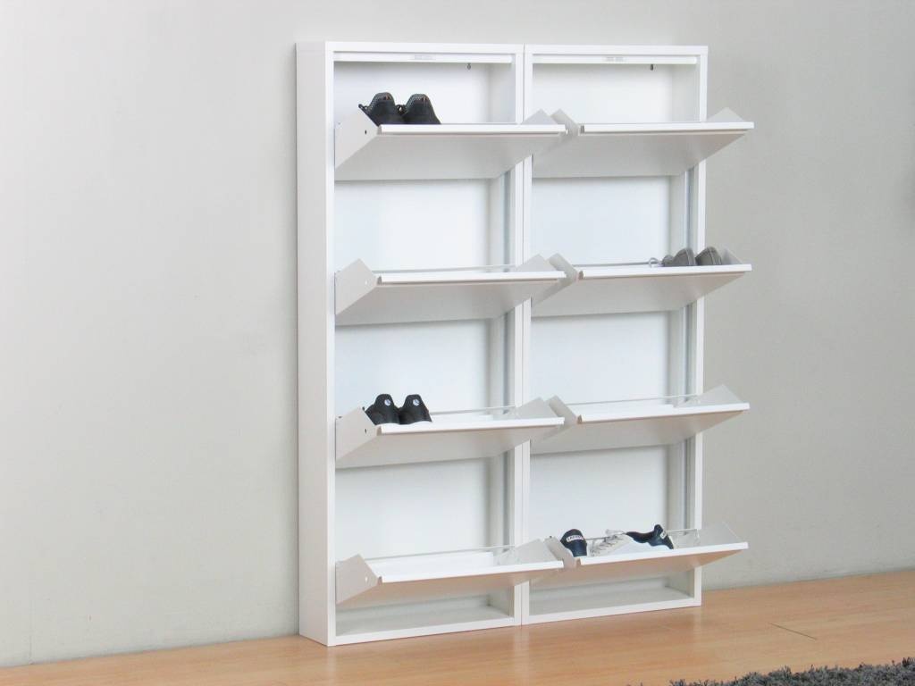 Belangrijkste kenmerken Pisa schoenenkast wit metaal met 4 vakken - set van 2: