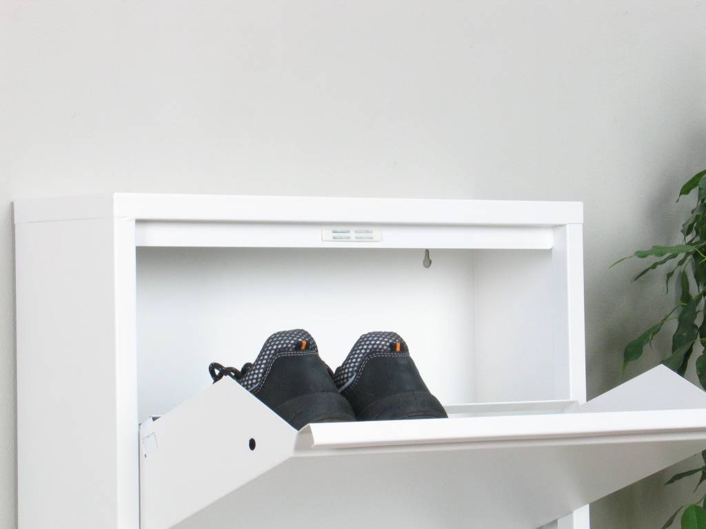 - De kleppen gaan gelijktijdig open en dicht, dus je hebt in één keer een overzicht van de opgeborgen schoenen