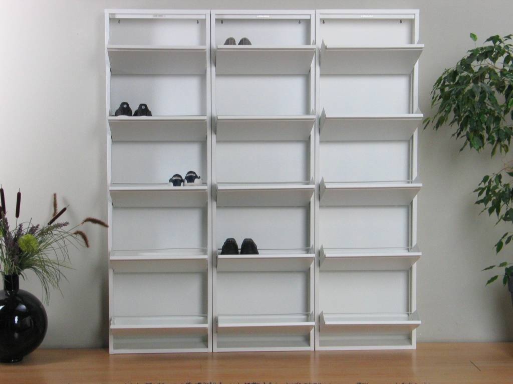 - De kleppen gaan gelijktijdig open en dicht, dus je hebt in één keer een overzicht van de opgeborgen schoenen