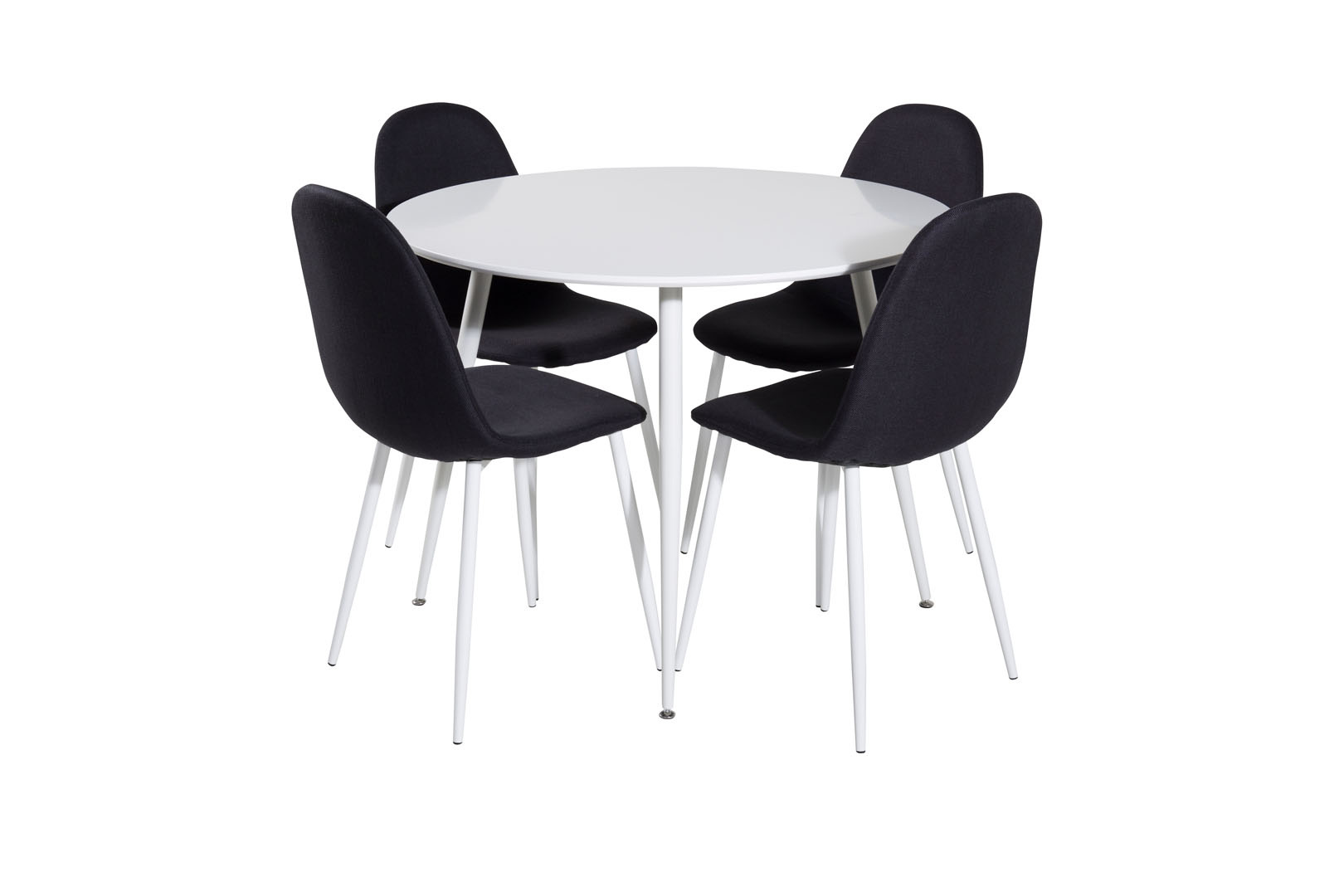 ebuy24 PlazaWHWH100 eethoek eetkamertafel wit en 4 Polar eetkamerstal zwart, wit.