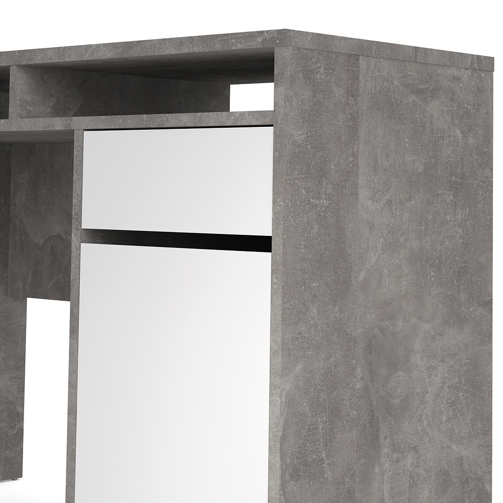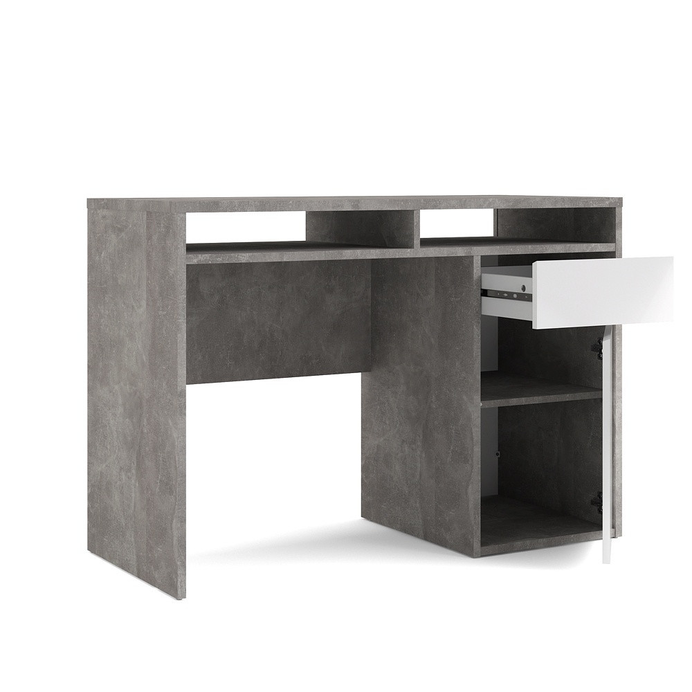 tom Plus bureau met 1 deur, 1 lade en 2 legplanken, betondecor/wit hoogglans.