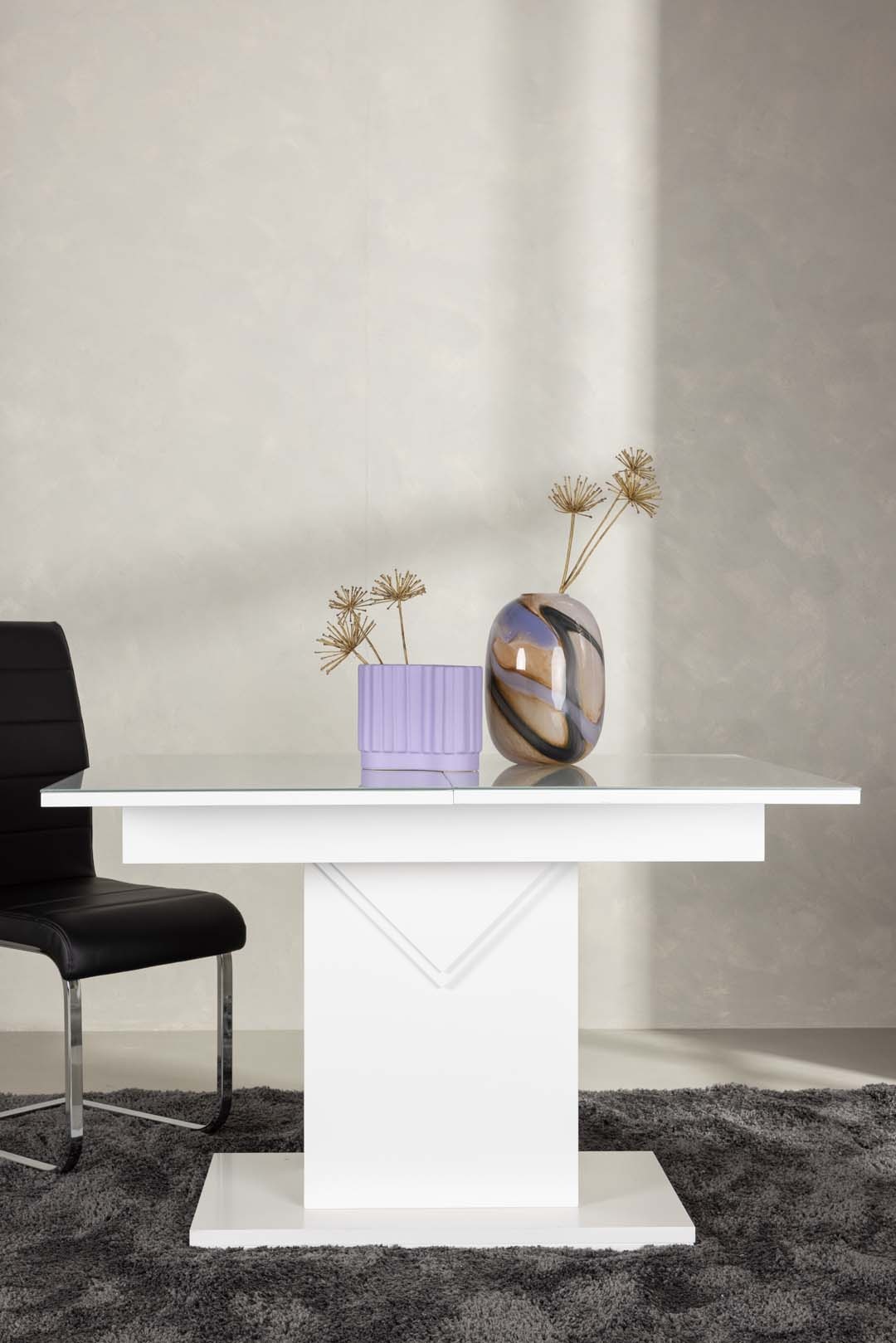 ebuy24 Pluto eetkamertafel 90x120cm, glas uittrekbaar met extra plaat wit.