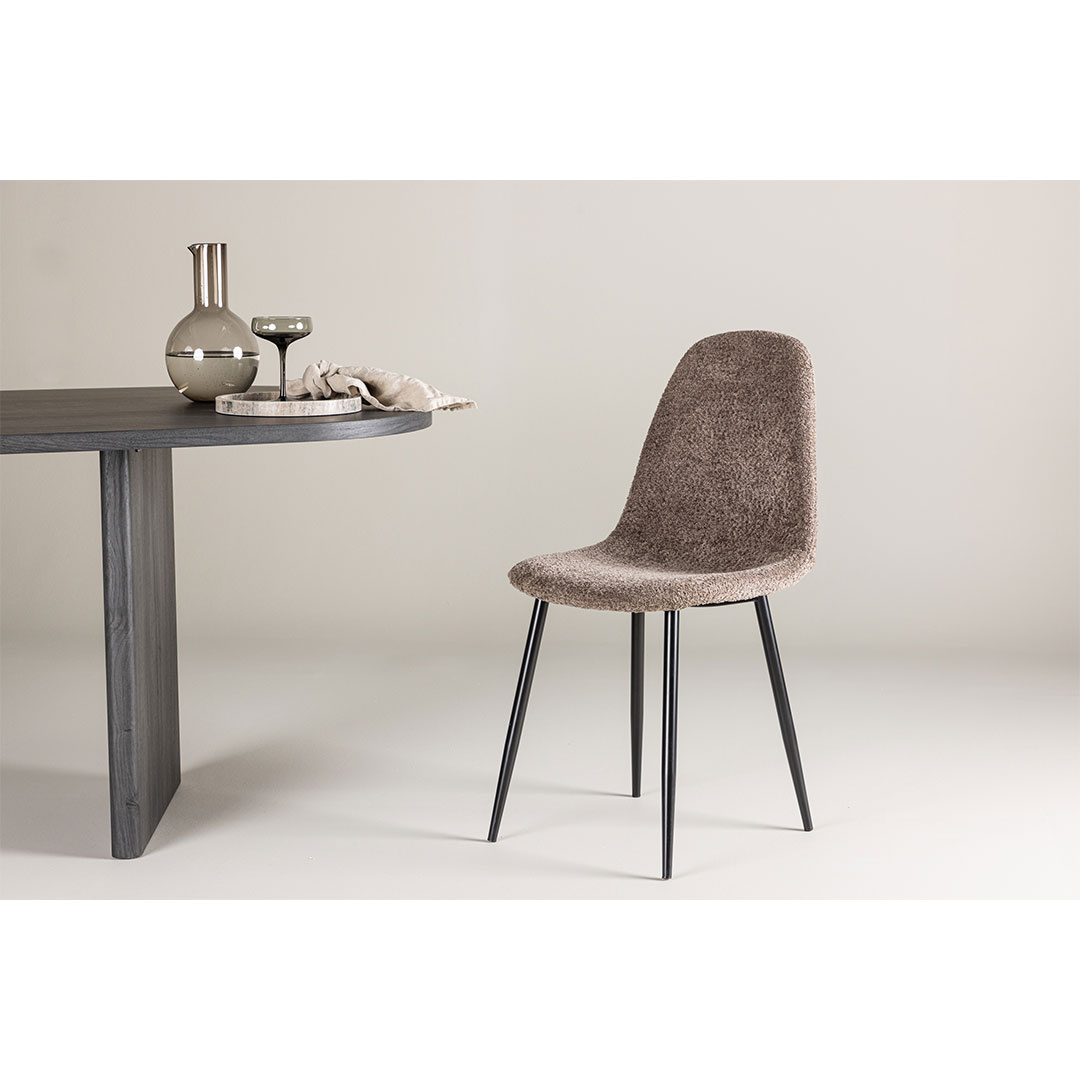 Polar eetkamerstoel boucle grijs is een eettafelstoel in de kleur grijs die zowel stijl als functionaliteit in uw huis brengt. Polar eetkamerstoel bouclé grijs. LET OP: Omdat de stoel per 2 in een doos verpakt is, dient er een even aantal stoelen besteld te worden. Ontdek comfort en elegantie met onze Polar eettafelstoel. Deze stoel is door zijn moderne design en hoge functionaliteit de perfecte aanvulling op je eettafel. De stoel Polar is bekleed met bouclé materiaal, wat zorgt voor een zachte en comfortabele zitervaring. Met zijn zwarte stalen poten biedt hij stabiliteit voor dagelijks gebruik. De grijze kleur van de stoel voegt een stijlvolle en elegante toets toe aan uw interieur, terwijl de zwarte poten de look op een verfijnde manier aanvullen. Of het nu voor familieavonden of meer formele gelegenheden is. De stoel van Polar zal een gewaardeerde aanvulling zijn op je eettafel en geeft je eetkamer een moderne en stijlvolle sfeer. Dit product is gemaakt met oog voor detail, wat zowel esthetische aantrekkingskracht als hoge duurzaamheid garandeert. Het is ontworpen met zowel functionaliteit als stijl in gedachten, waardoor het de perfecte keuze is voor elke kamer in uw huis. De gebruikte materialen zijn van hoge kwaliteit, waardoor het product een lange levensduur heeft en bestand is tegen dagelijks gebruik. Of het nu voor opslag is of als decoratieve toevoeging, dit product zal uw interieur naar een hoger niveau tillen en extra comfort en elegantie in uw huis brengen. De prijs is voor 1 stuk..