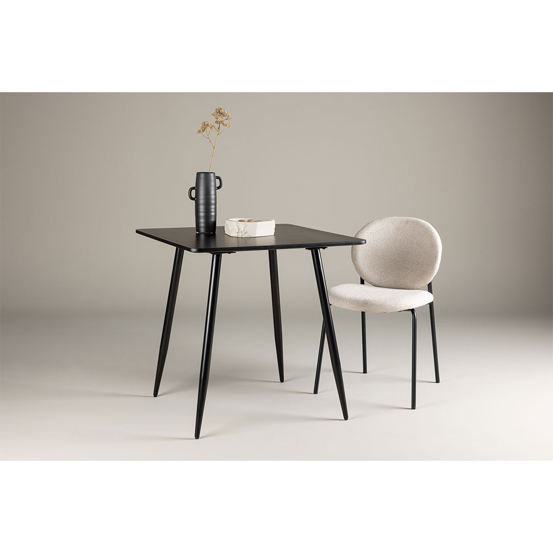 Polar eettafel 75x75cm zwart is een eettafel in de kleur zwart die zowel stijl als functionaliteit in uw huis brengt. Polar eettafel 75x75cm zwart. Ontdek de Polar eettafel - een stijlvol en trendy meubelstuk voor moderne woningen. Met zijn compacte afmetingen van 75x75 cm is Polar perfect voor kleinere ruimtes of als mooi accent in je kamer. De zwarte tafel geeft een minimalistische en tijdloze uitstraling aan je interieur, waardoor het een veelzijdig meubelstuk is dat past bij verschillende stijlen en ruimtes. De Polar eettafel combineert stijl en functionaliteit op een elegante manier. Voeg een modern tintje toe aan je huis met de Polar eettafel. Of je hem nu gebruikt voor maaltijden, als werktafel of als plek om te socialiseren, deze tafel voegt een stijlvolle en trendy sfeer toe aan je ruimte. Dit product is gemaakt met oog voor detail, wat zowel esthetische aantrekkingskracht als hoge duurzaamheid garandeert. Het is ontworpen met zowel functionaliteit als stijl in gedachten, waardoor het de perfecte keuze is voor elke kamer in uw huis. De gebruikte materialen zijn van hoge kwaliteit, waardoor het product een lange levensduur heeft en bestand is tegen dagelijks gebruik. Of het nu voor opslag is of als decoratieve toevoeging, dit product zal uw interieur naar een hoger niveau tillen en extra comfort en elegantie in uw huis brengen.