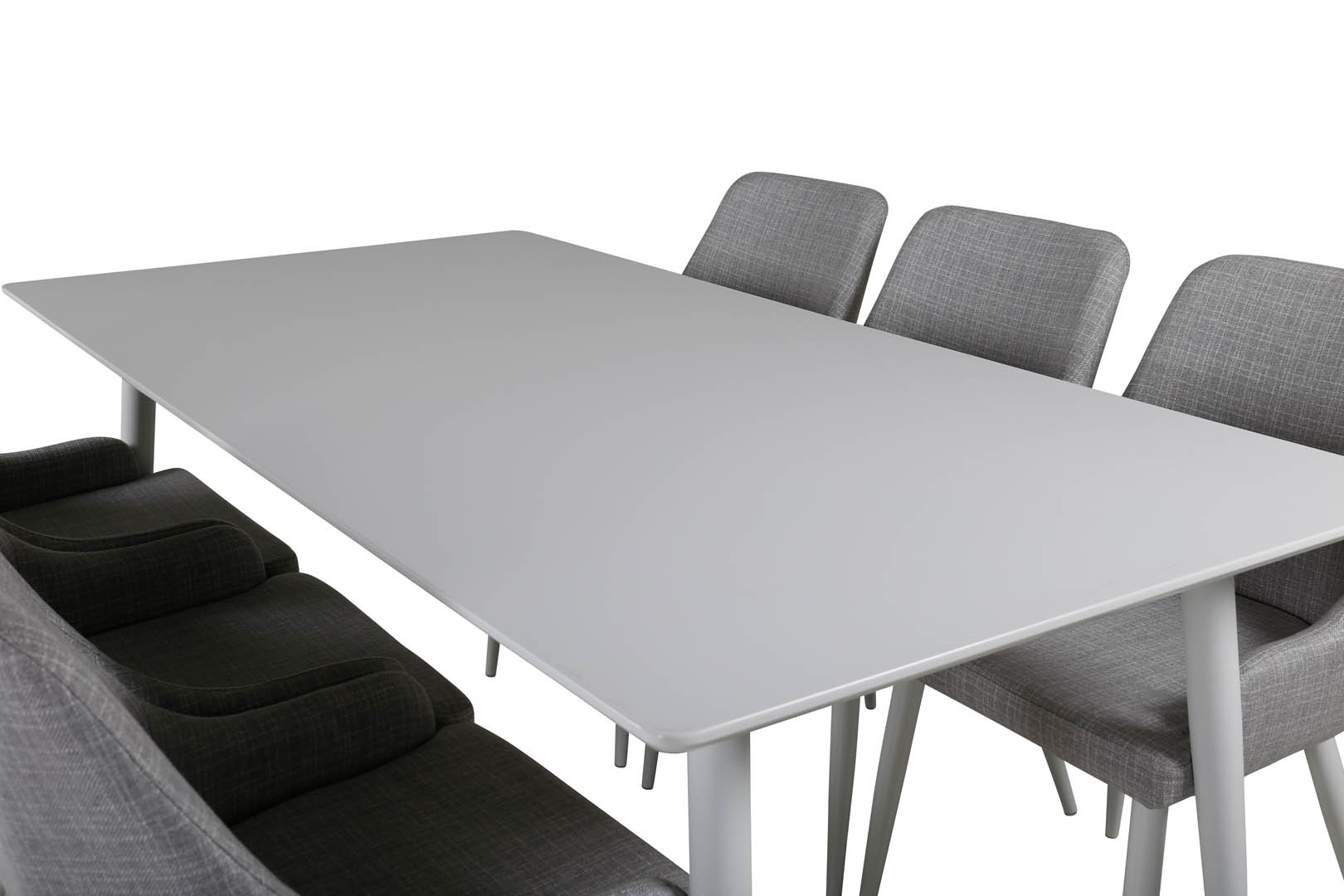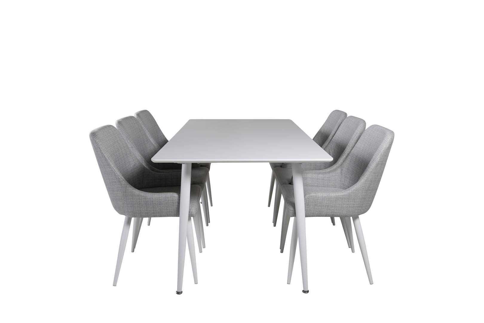 ebuy24 Polar180X90WHWH eethoek eetkamertafel wit en 6 Plaza eetkamerstal grijs, wit.