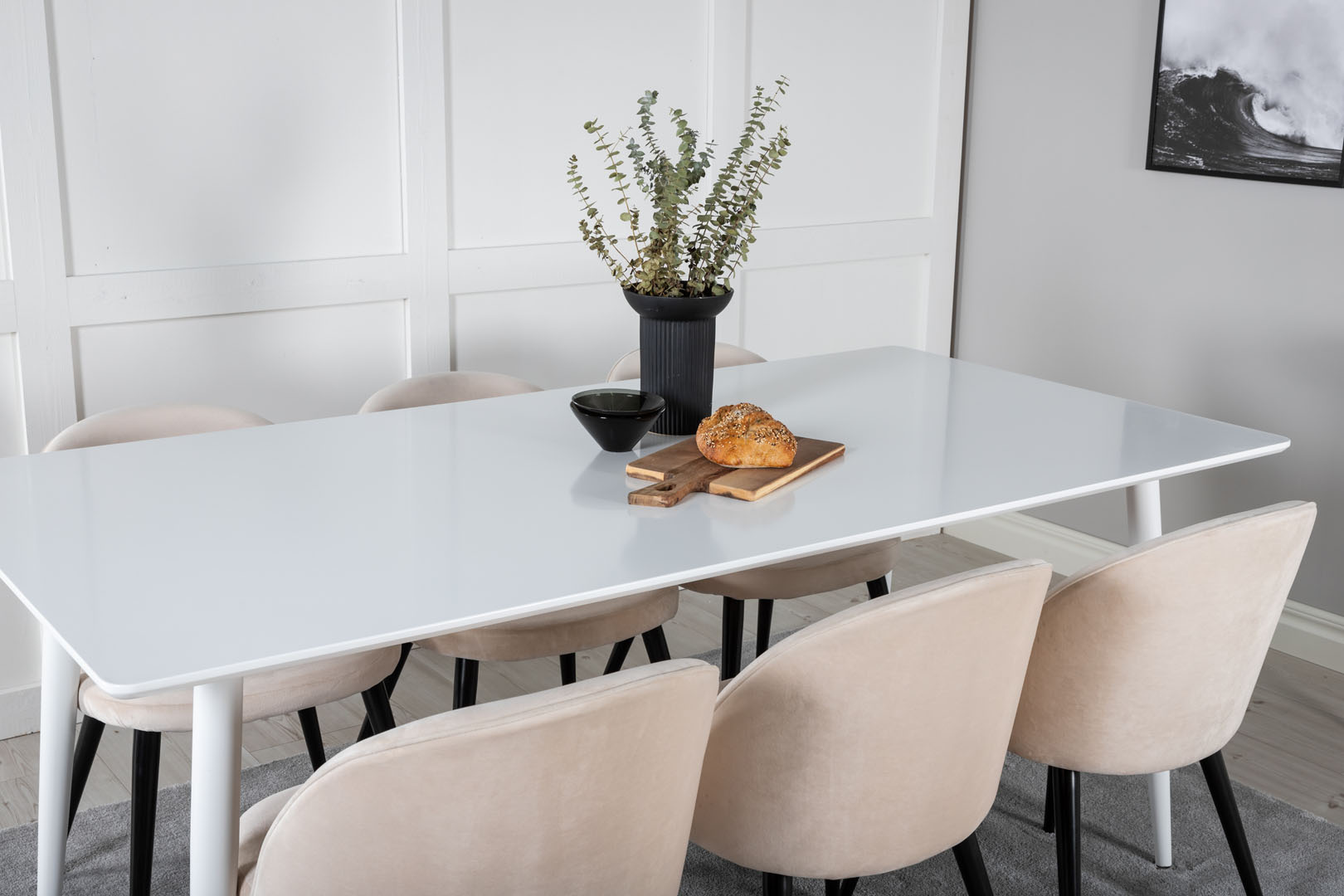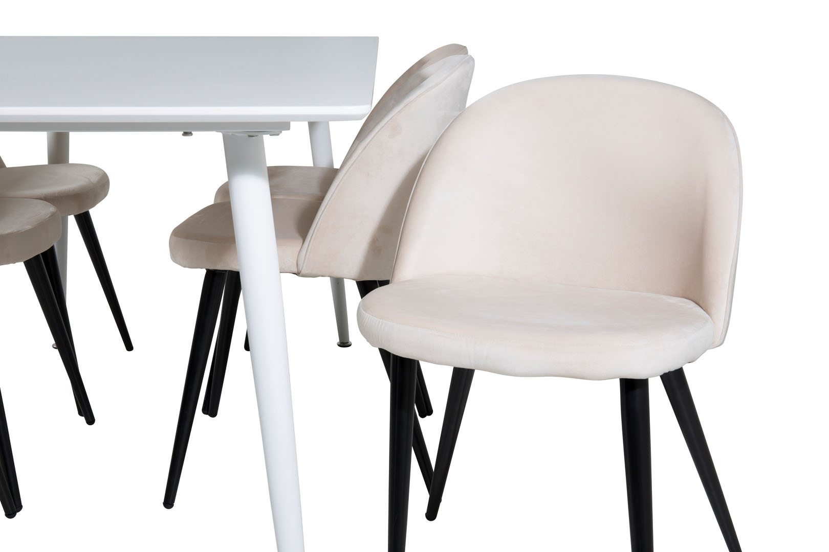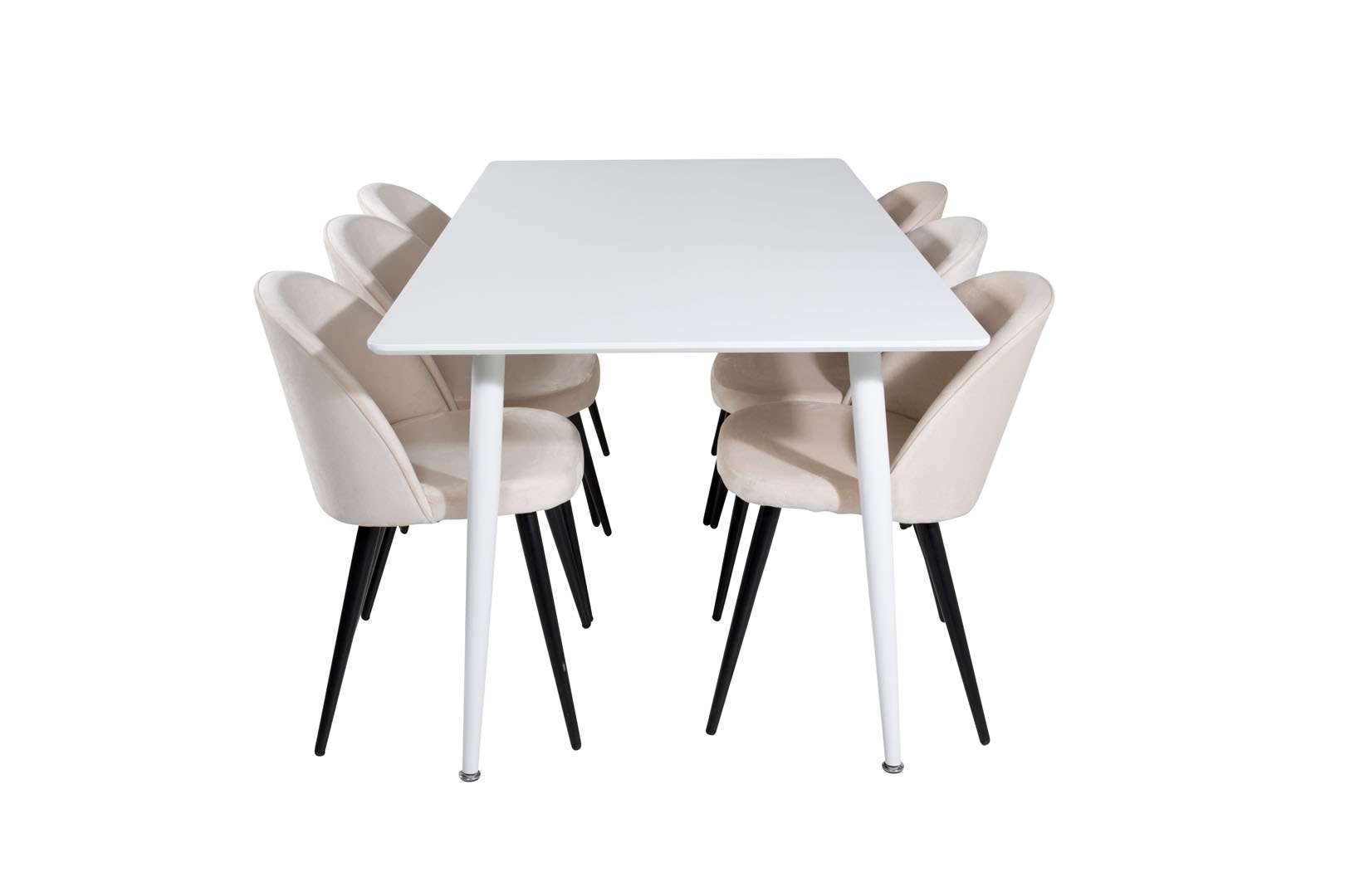 ebuy24 Polar180X90WHWH eethoek eetkamertafel wit en 6 Velvet eetkamerstal velours beige, zwart.