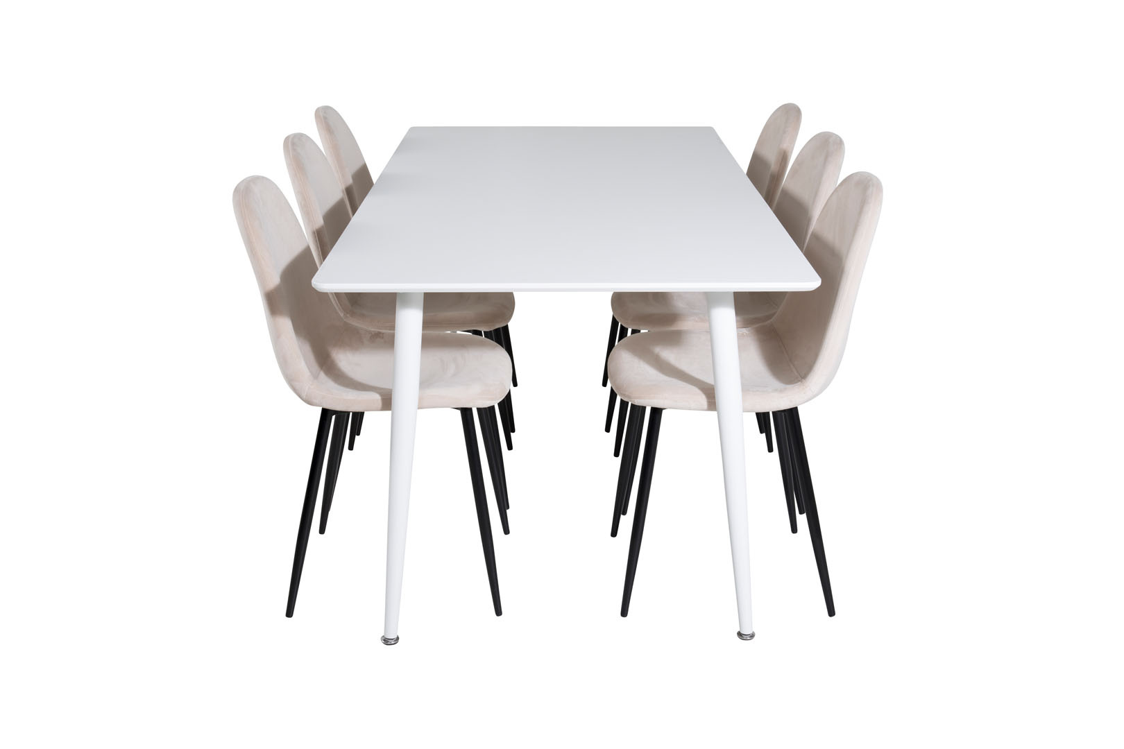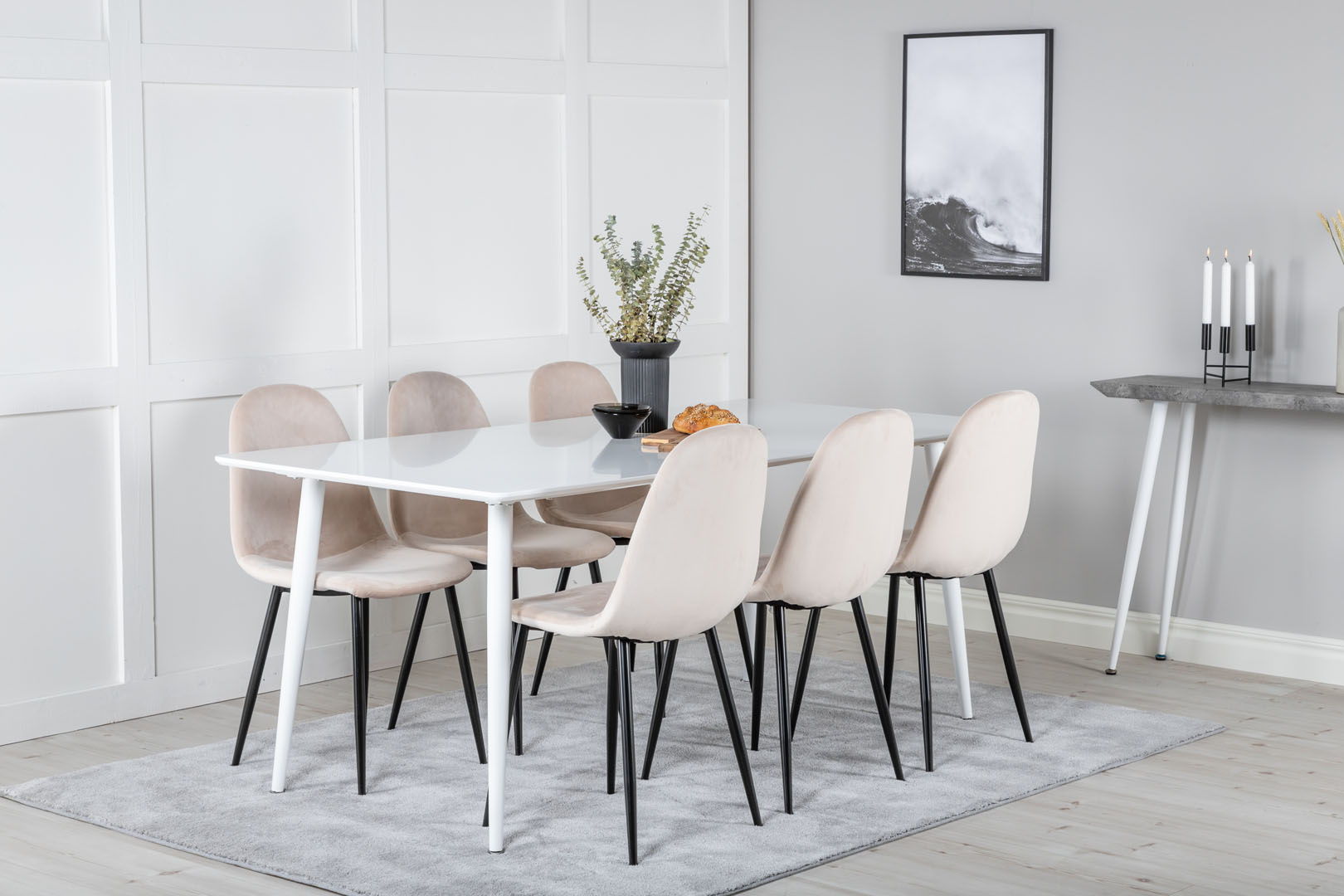ebuy24 Polar180X90WHWH eethoek eetkamertafel wit en 6 Polar eetkamerstal velours beige.