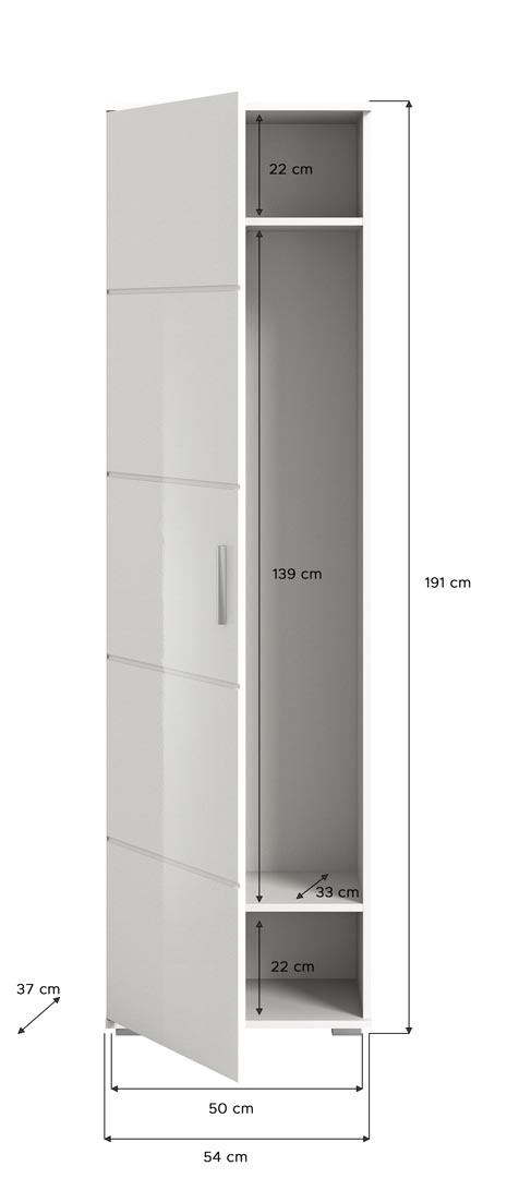 Productafmetingen: Breedte: 110 cm Diepte: 37 cm Hoogte: 191 cm