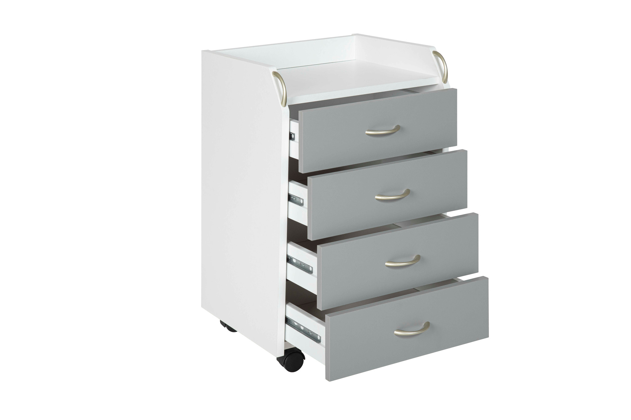 Printi kommode kantoorarchief 6 laden, 4 zwenkwielen (incl 2 met stopper) wit, grijs.