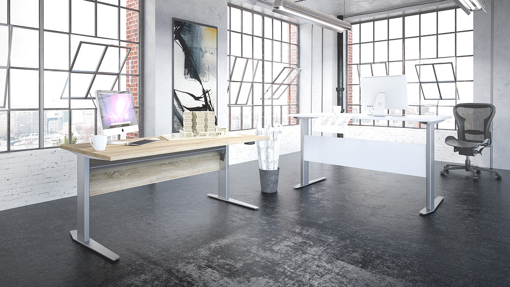 Prisme bureau B eiken decor en zilvergrijs staal.