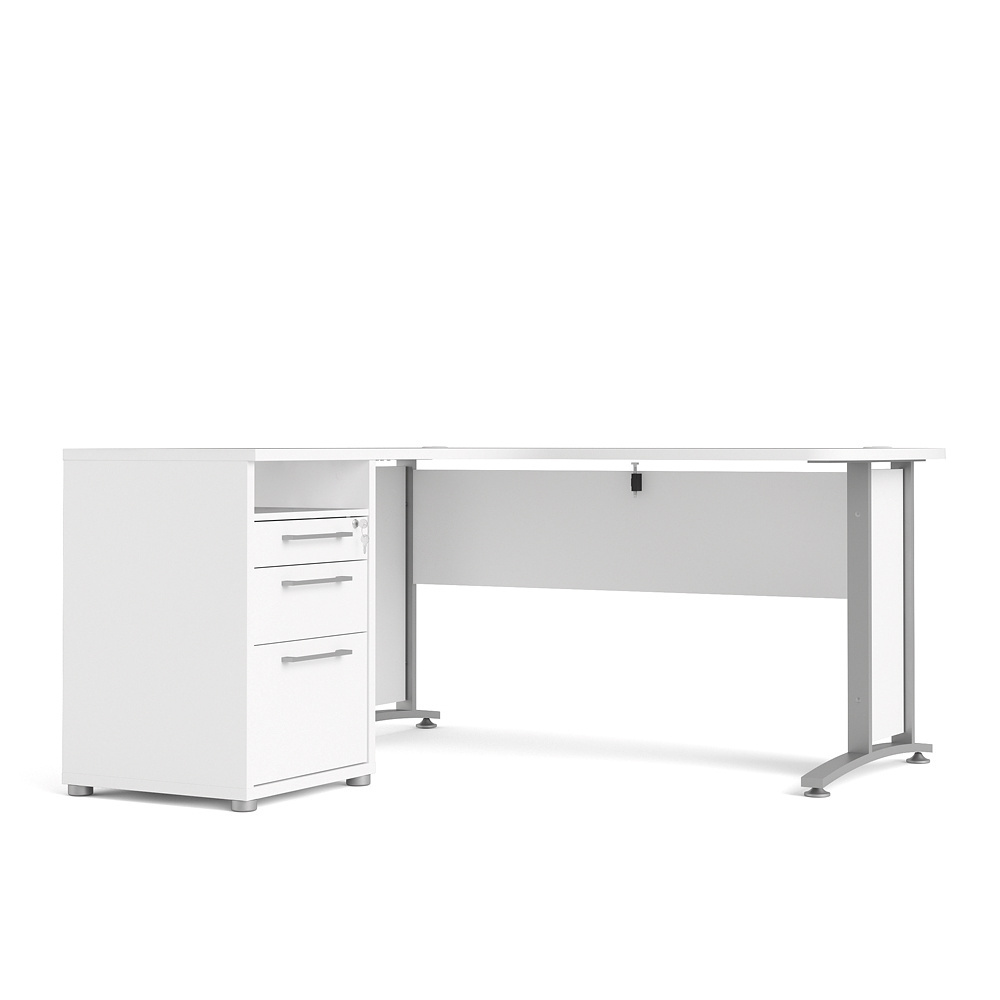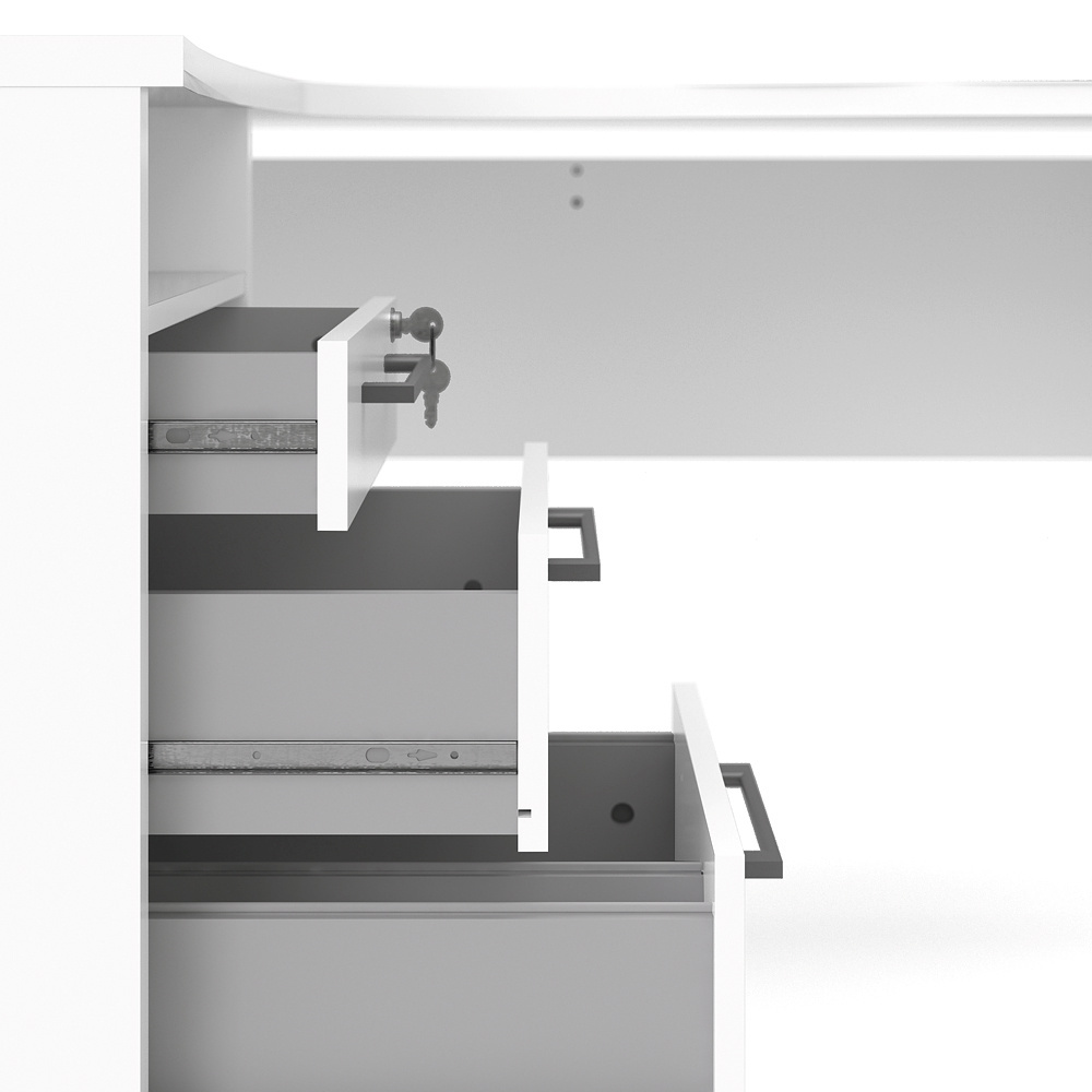 Prisme Hoekbureau met 1 plank en 3 laden, wit, grijs