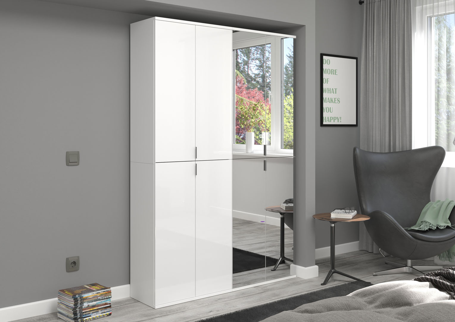 ebuy24 ProjektX kledingkast 8 deuren wit, spiegel.