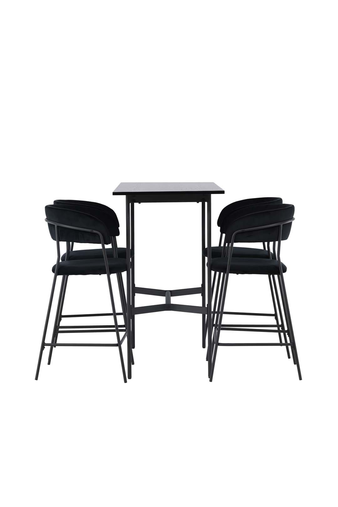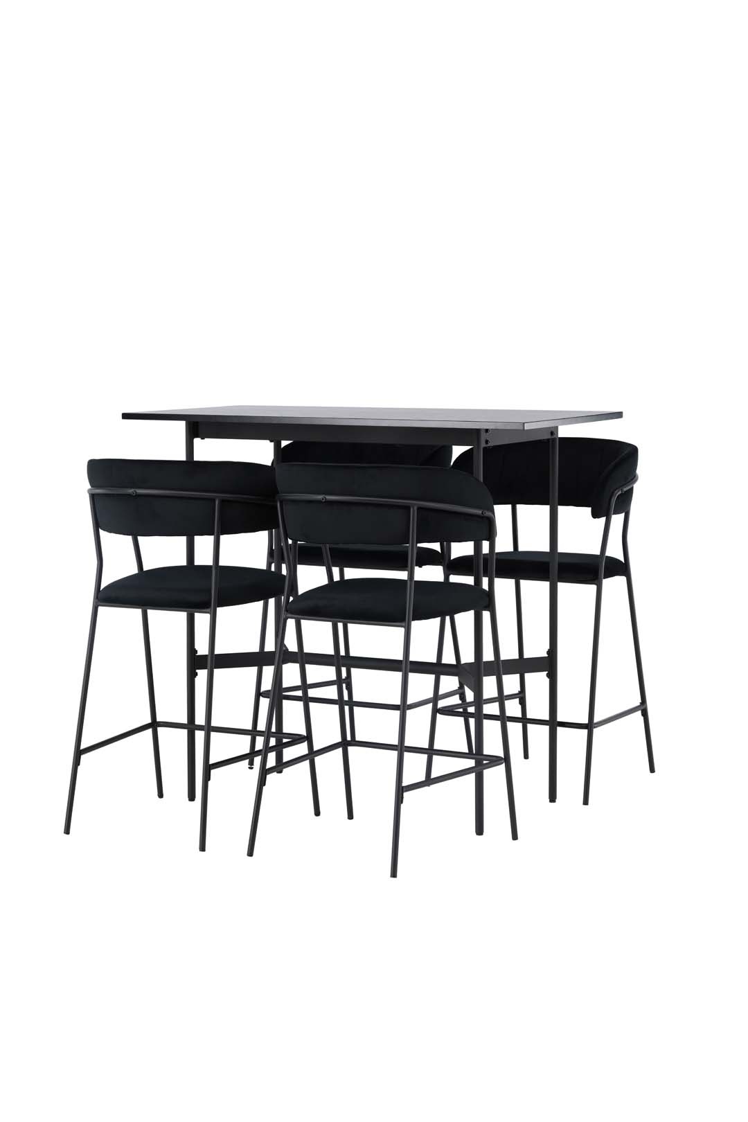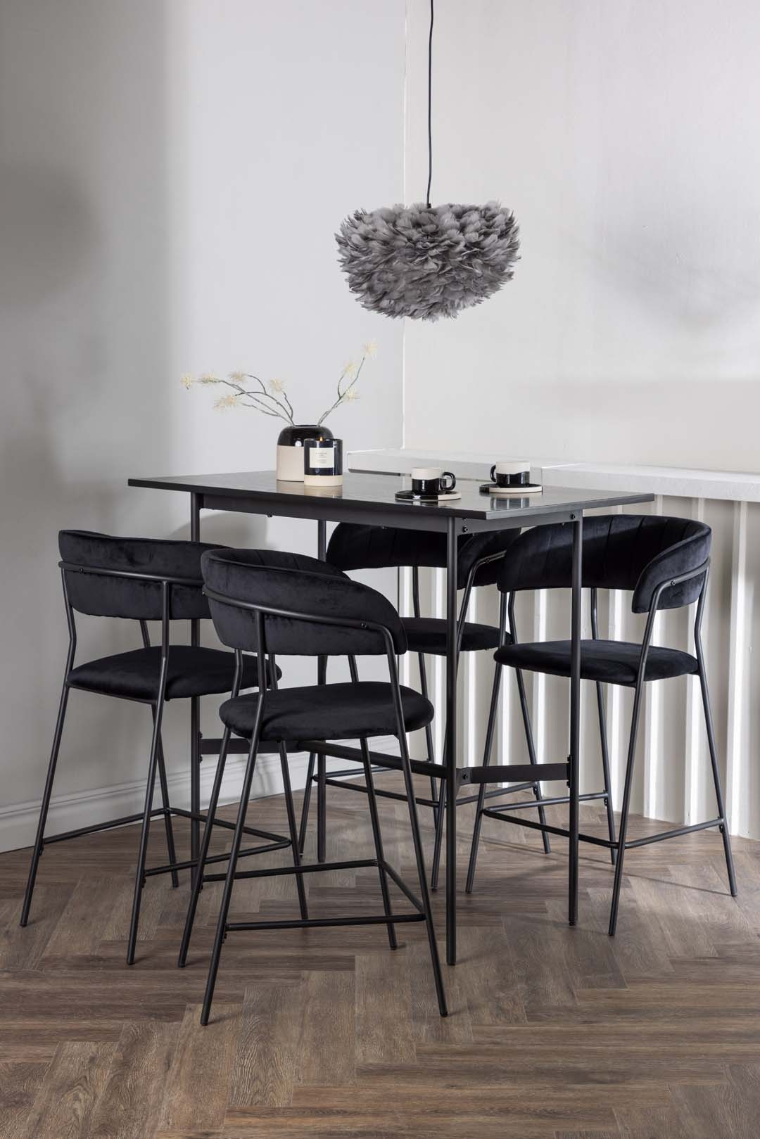 ebuy24 Rax barmeubelset bartafel zwart en 4 Lui barstoelen zwart.