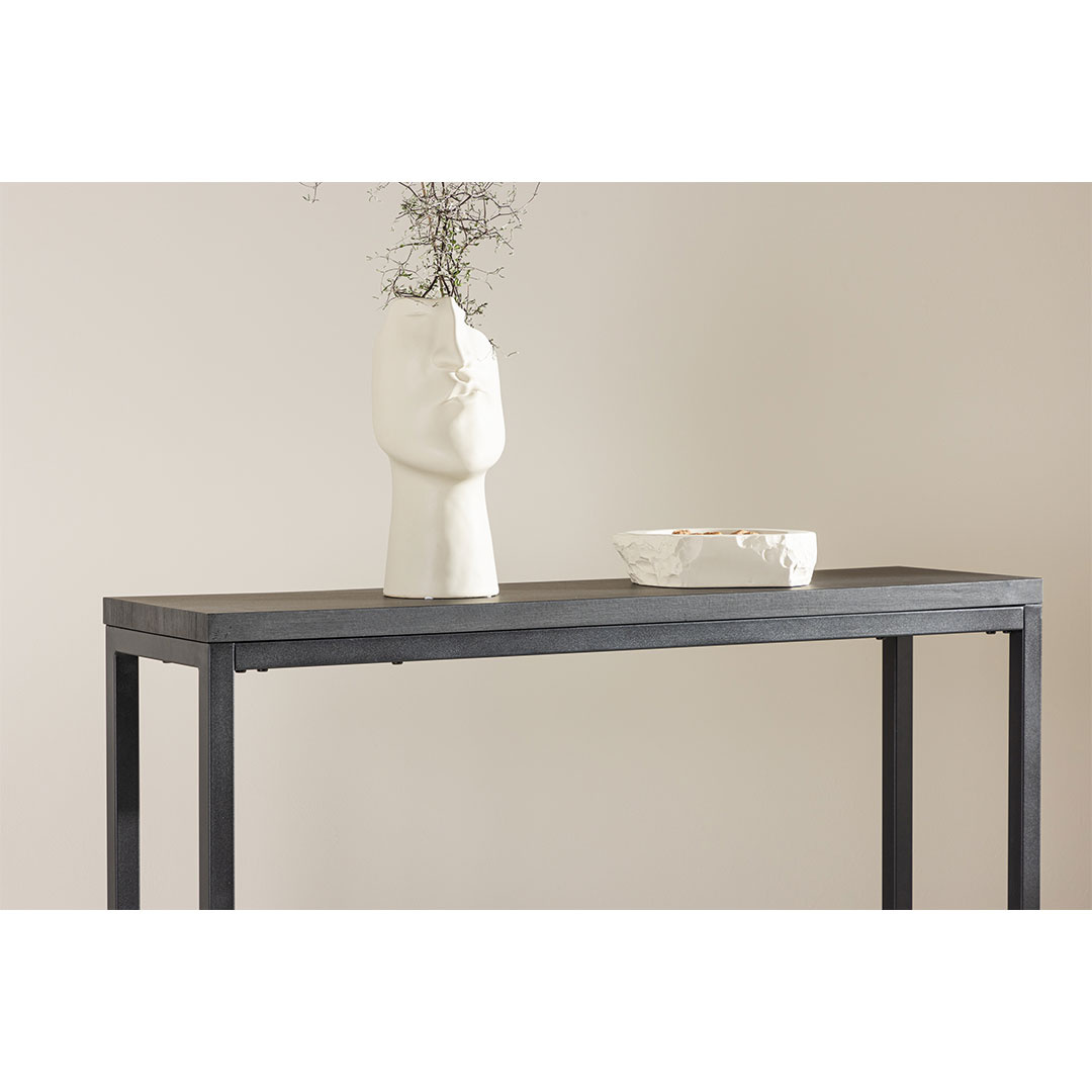 Rise consoletafel zwart is een consoletafel in zwarte kleur die zowel stijl als functionaliteit in uw huis brengt. Rise consoletafel zwart. Ontdek de Rise bijzettafel - een elegant, trendsettend en tijdloos meubelstuk dat het niveau van uw interieur naar een hoger niveau zal tillen. Met een afmeting van 110x30 cm en een hoogte van 80 cm biedt Rise voldoende ruimte om je favoriete spullen of decoratieve spullen op te plaatsen. De zwarte afwerking geeft de bijzettafel een elegante en tijdloze uitstraling, waardoor hij perfect past bij verschillende interieurstijlen. Rise combineert een gestroomlijnd ontwerp met doordachte details, waardoor een samenhangende en evenwichtige esthetiek ontstaat. Voeg een vleugje stijl en elegantie toe aan uw ruimte met de Rise bijzettafel. Of je hem nu gebruikt als praktische aanvulling naast de bank of als elegant accent in de gang, Rise zorgt voor een gesprek en voegt een verfijnde sfeer toe aan je huis. Dit product is gemaakt met oog voor detail, wat zowel esthetische aantrekkingskracht als hoge duurzaamheid garandeert. Het is ontworpen met zowel functionaliteit als stijl in gedachten, waardoor het de perfecte keuze is voor elke kamer in uw huis. De gebruikte materialen zijn van hoge kwaliteit, waardoor het product een lange levensduur heeft en bestand is tegen dagelijks gebruik. Of het nu voor opslag is of als decoratieve toevoeging, dit product zal uw interieur naar een hoger niveau tillen en extra comfort en elegantie in uw huis brengen.