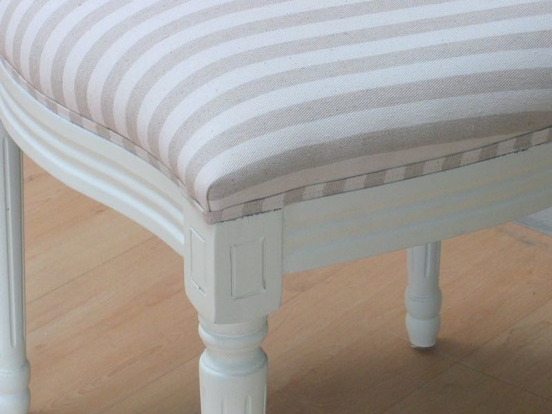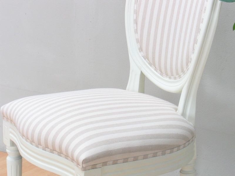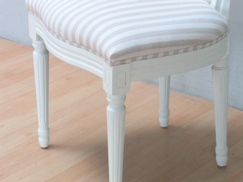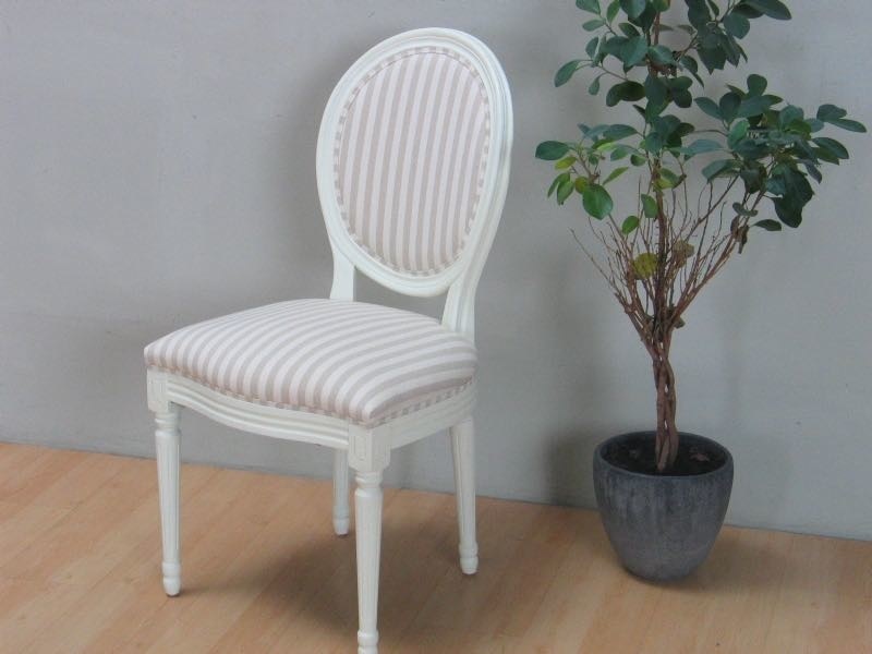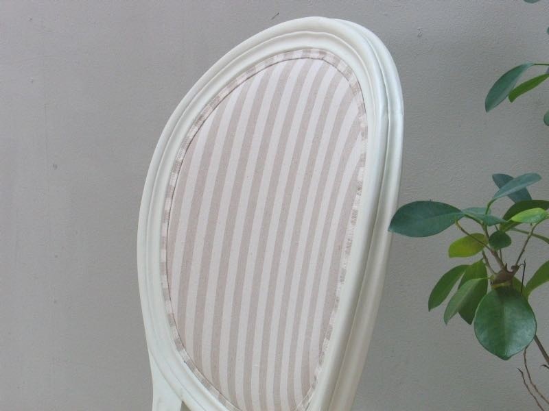 Rokoko/Amaretta eetkamerstoel, in antiek wit met beige gestreepte stof.
