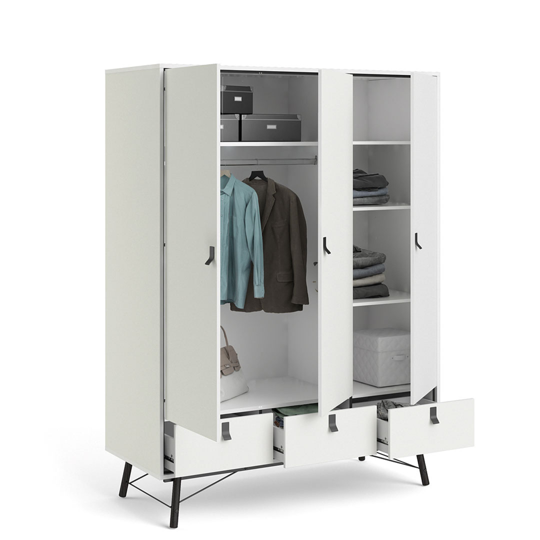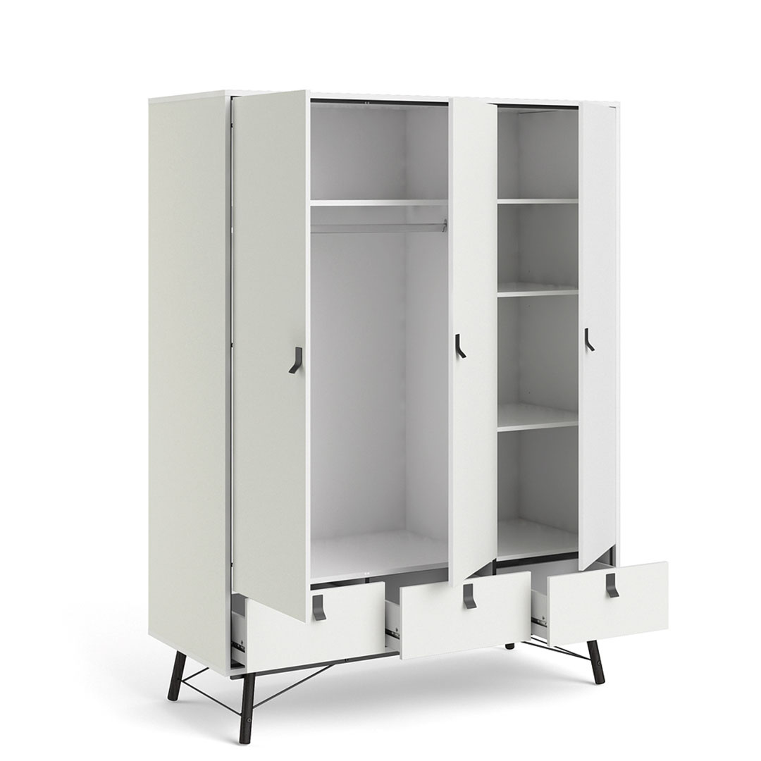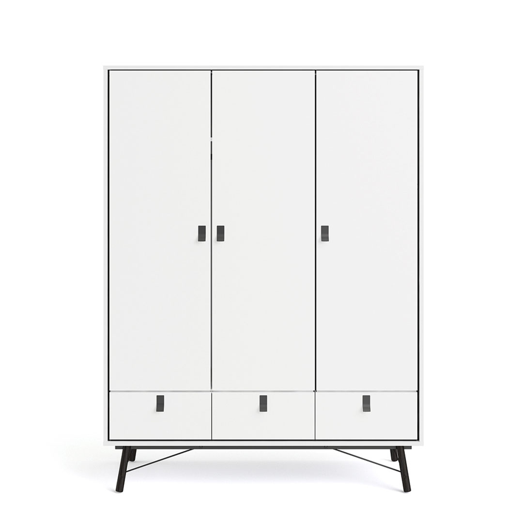 ebuy24 Rye Garderobe 3 deuren, 3 laden mat wit.