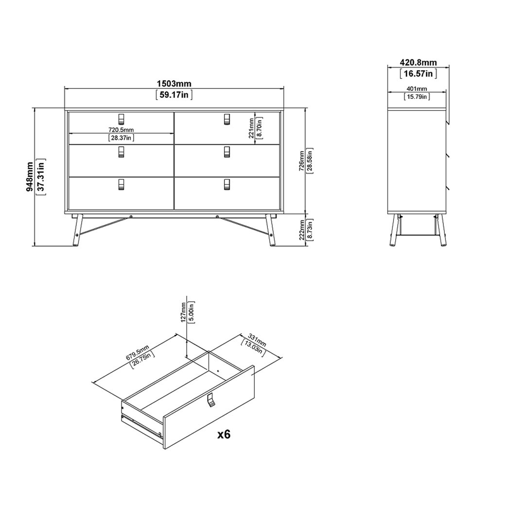 ebuy24 Rye Ladekast breed 6 laden mat wit.