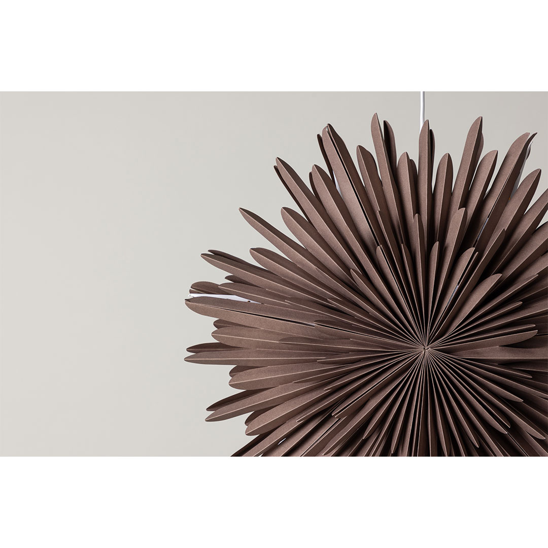 Sälen Kerstster met licht papier Ø60cm hanger bruin is een kerstlamp in bruine kleur die zowel stijl als functionaliteit in uw huis brengt. Sälen Kerstster met lichtpapier Ø60cm hanglamp lichtbruin. Lichtbron: E14. Watt (W): 15. Excl. Gloeilamp. Incl. draad. Versier je huis met warm licht op koude winterdagen met onze papieren ster in greige kleur uit de Sälen serie! Deze plafondlamp heeft de vorm van een bloeiende ster en verspreidt een magische gloed en gezellige gevoelens wanneer dat het meest nodig is. De kleur neigt naar de donkerbruine kleur, maar bevat ook tinten grijs en beige. Het witte snoer dat de lamp op zijn plaats houdt zorgt voor een discreet en stijlvol interieur zodat uw verlichting centraal in de kamer kan staan. Of het nu de donkere winter- en herfstdagen zijn of de feeststemming van Kerstmis, deze papieren ster zorgt voor een heerlijk gezellige en rustgevende sfeer. De bloeiende papieren ster van Sälen is verkrijgbaar in verschillende kleuren en maten, zodat u degene kunt kiezen die het beste bij u en uw huis past. Creëer een persoonlijk tintje en richt je huis zo in dat je je rustig en omarmd voelt! Afmetingen: 60 cm. Dit product is gemaakt met oog voor detail, wat zowel esthetische aantrekkingskracht als hoge duurzaamheid garandeert. Het is ontworpen met zowel functionaliteit als stijl in gedachten, waardoor het de perfecte keuze is voor elke kamer in uw huis. De gebruikte materialen zijn van hoge kwaliteit, waardoor het product een lange levensduur heeft en bestand is tegen dagelijks gebruik. Of het nu voor opslag is of als decoratieve toevoeging, dit product zal uw interieur naar een hoger niveau tillen en extra comfort en elegantie in uw huis brengen.