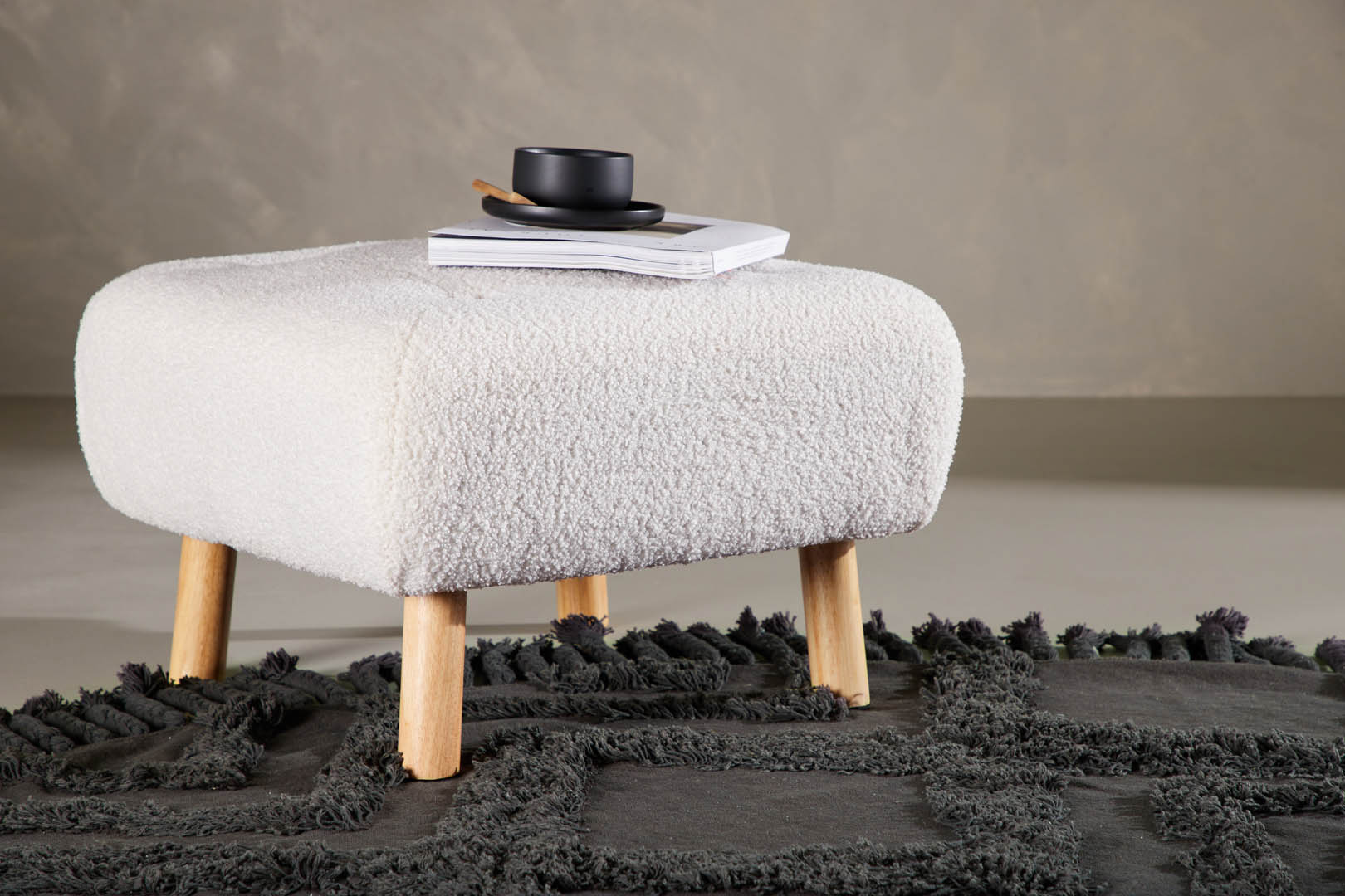 ebuy24 Salina poef, hocker teddystof naturel, wit.