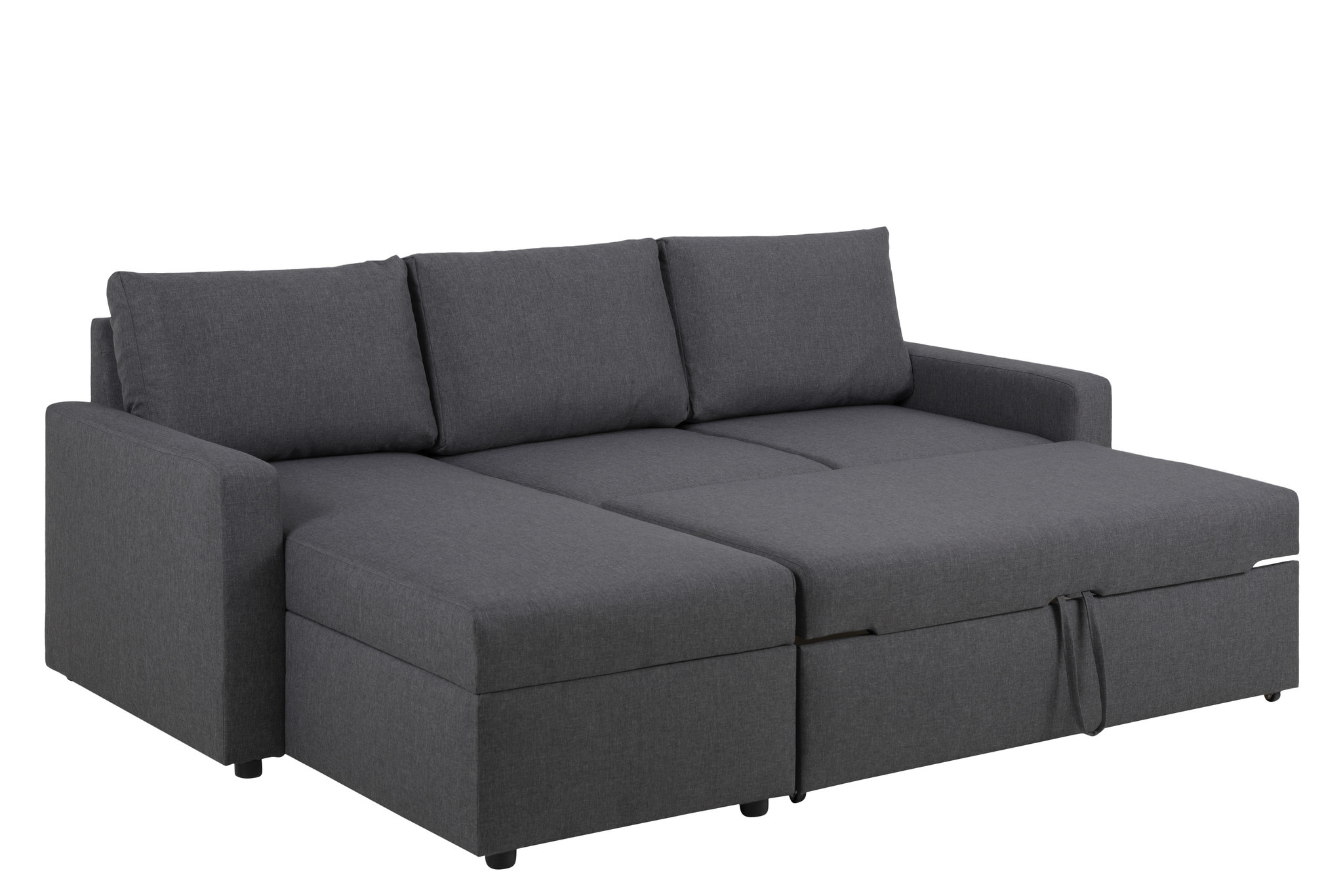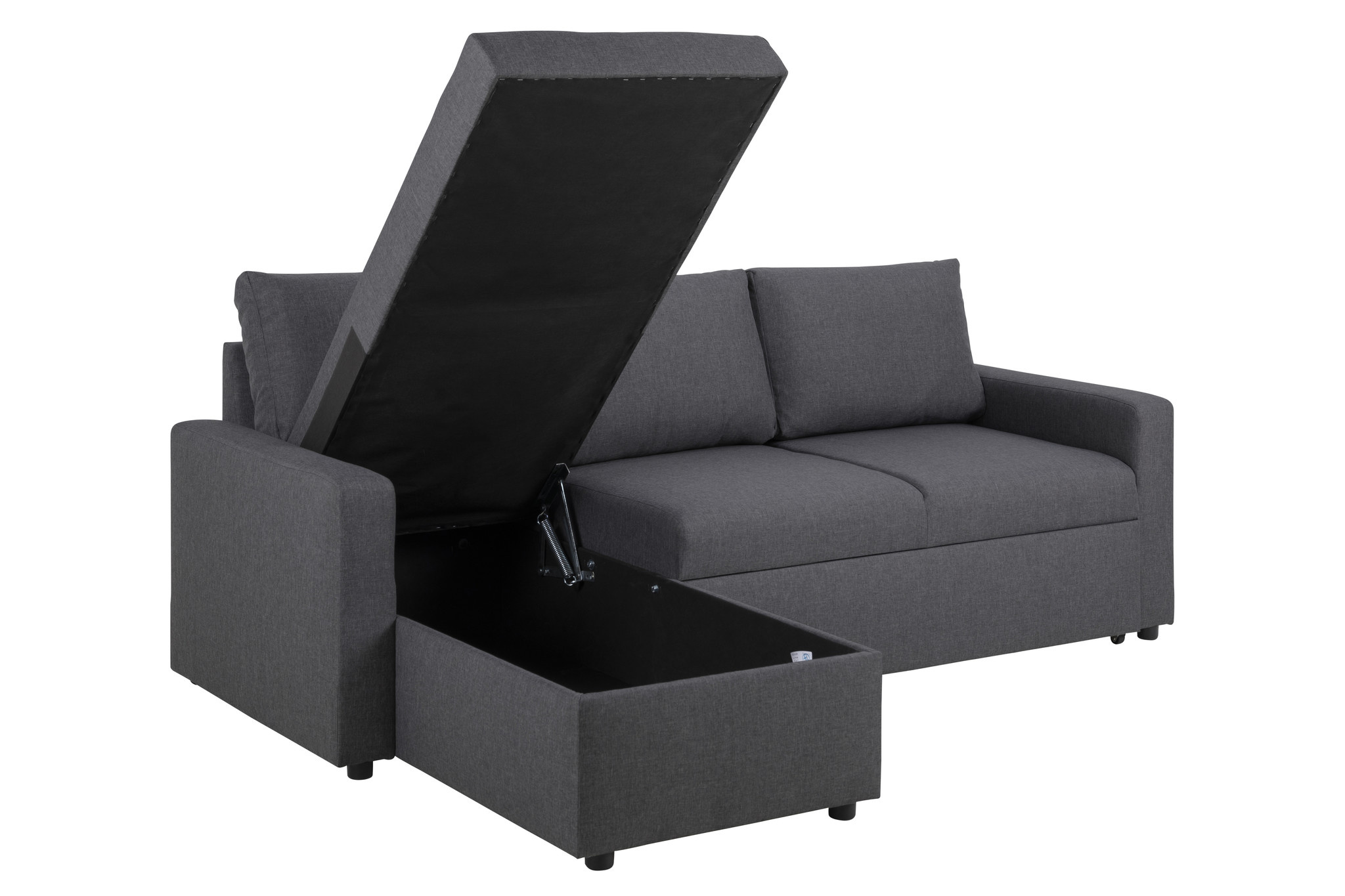 Sander slaapbank met chaise longue, opbergruimte en uittrek grijs.