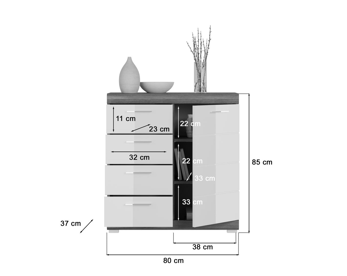 ebuy24 Scout dressoir 1 deur, 4 laden grijs.