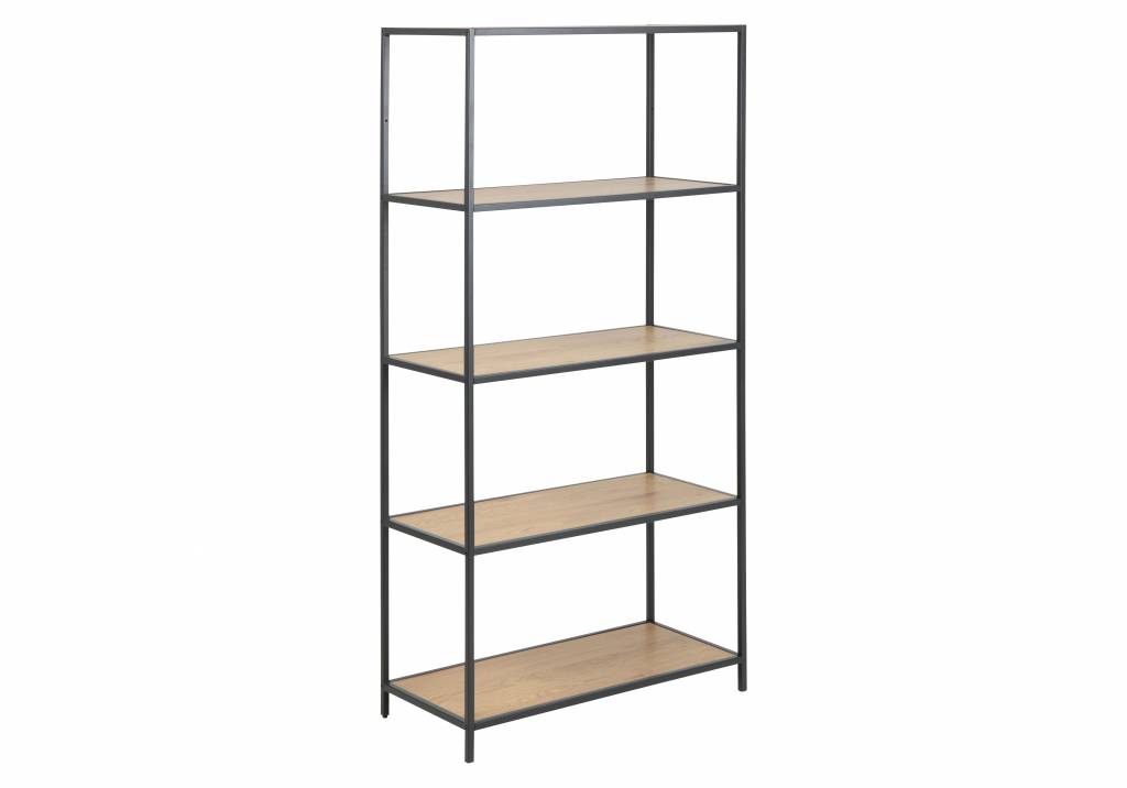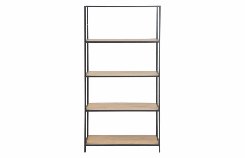 Sea boekenrek met 3 planken in wild eiken en zwart metaal