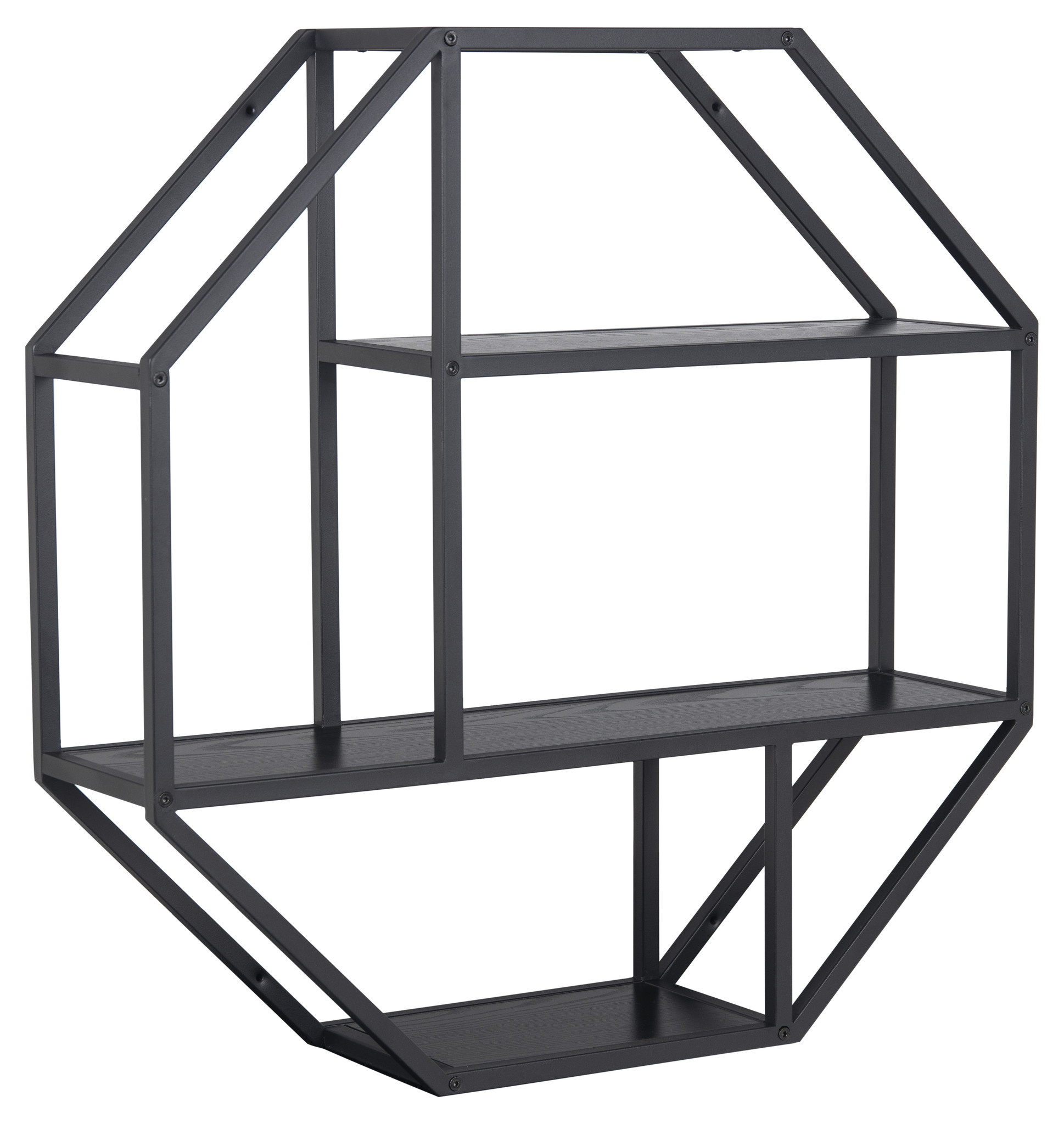 Sea wandkast Wandplank achthoekig met 3 planken zwart.