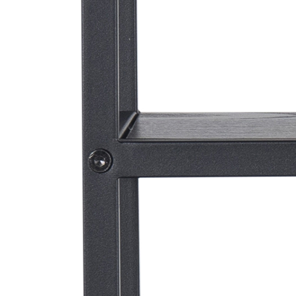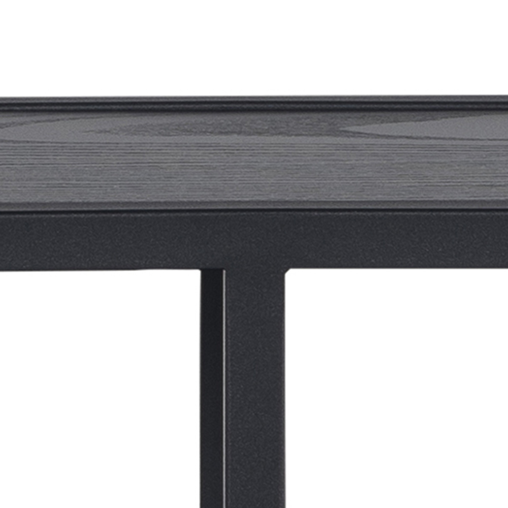 Materialen: Metaal, melamine. Melamine essen zwart, metalen frame ruw gepoedercoat, mat zwart.