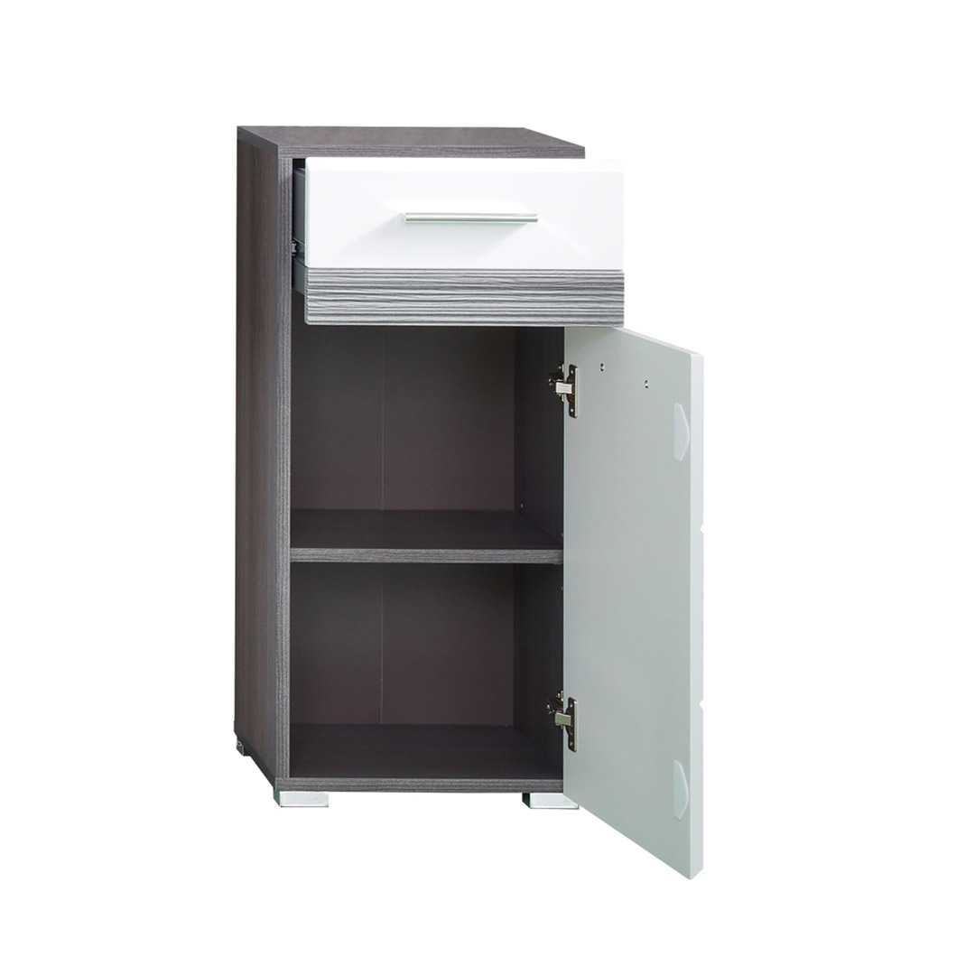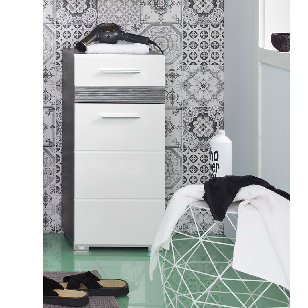 SetOne badkamerkast 1 deur, 1 lade rookzilver, wit hoogglans.