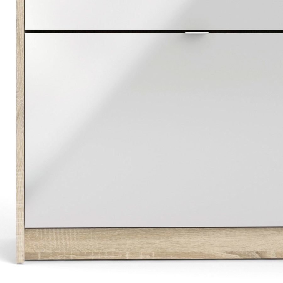 Shane schoenenkast 3 klapdeuren 2R, 1 deur eikenstructuur decor, wit hoogglans.