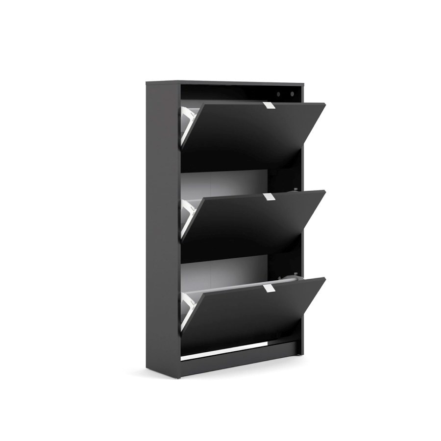 Shane schoenenkast 3 klapdeuren 2R mat zwart.