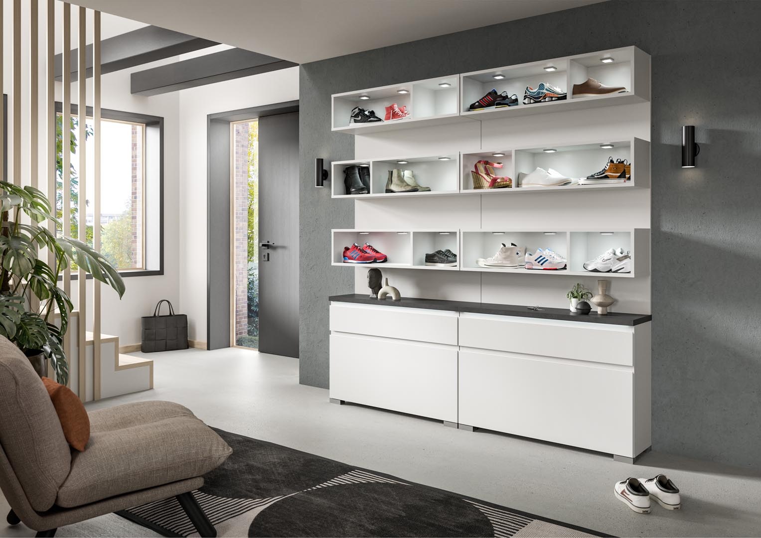 ebuy24 Shoelove schoenenkast wandkast 1 klep, 1 lade, planken met licht wit,grijs.
