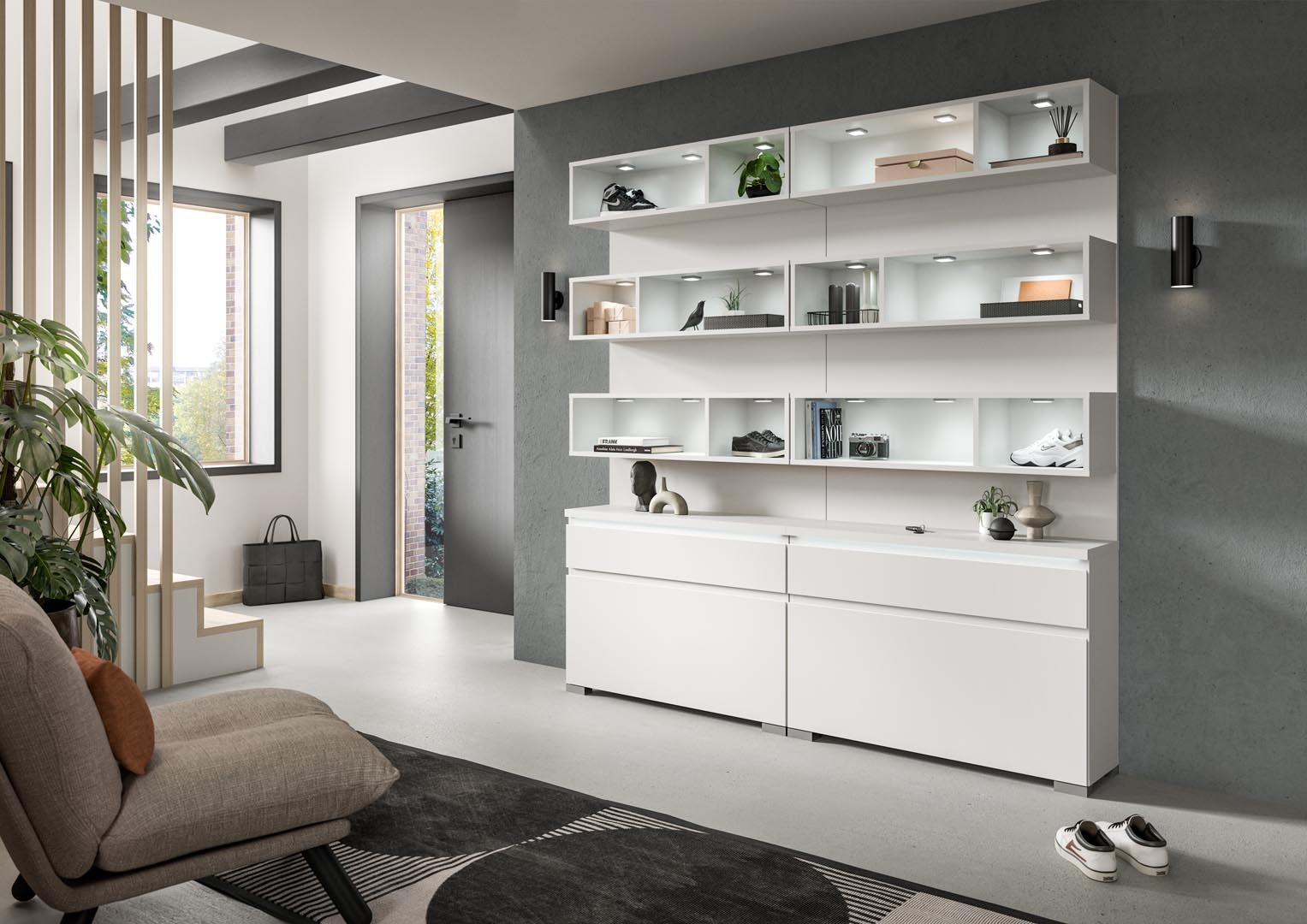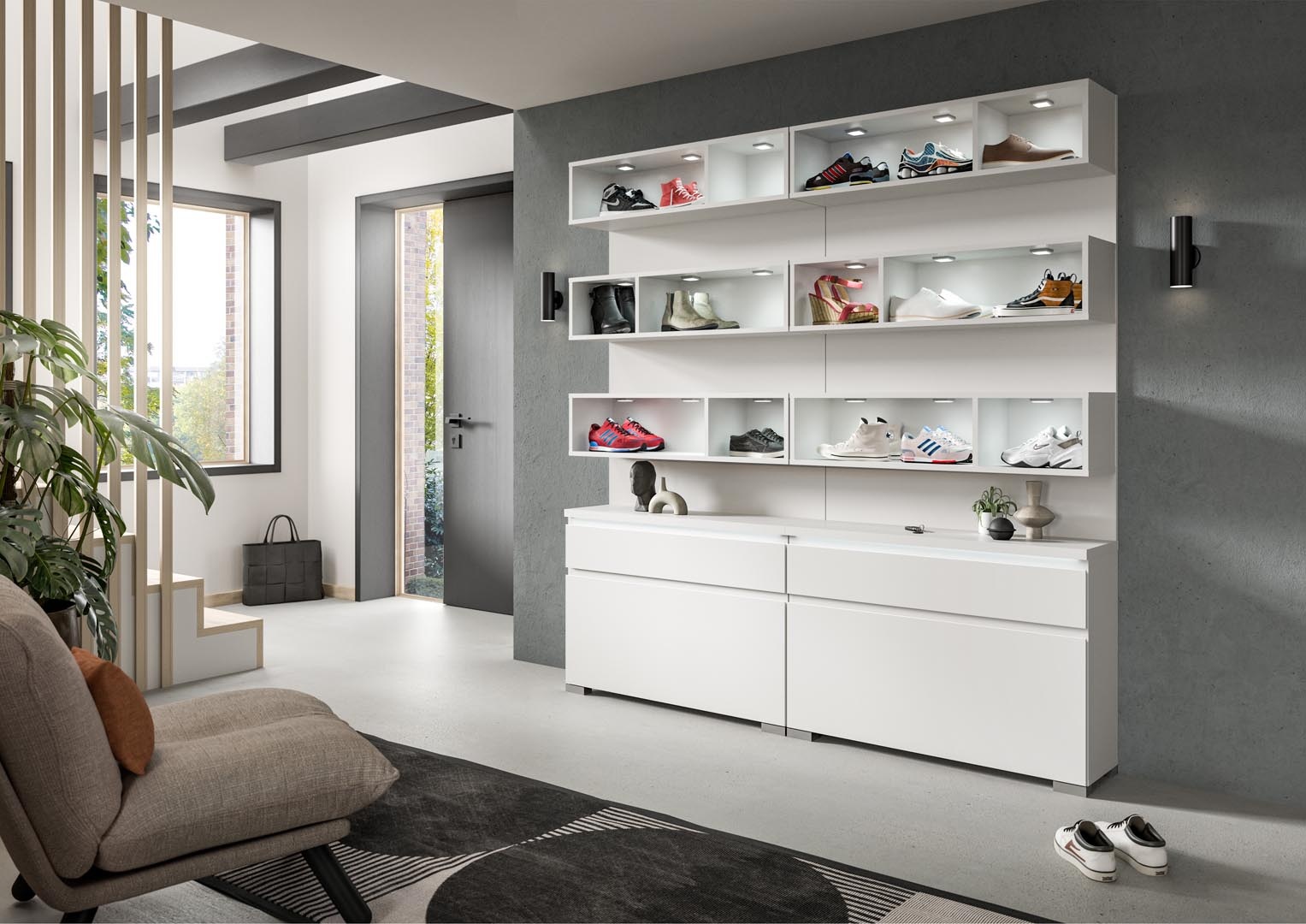 ebuy24 Shoelove schoenenkast wandkast 1 klep, 1 lade, planken met licht wit.