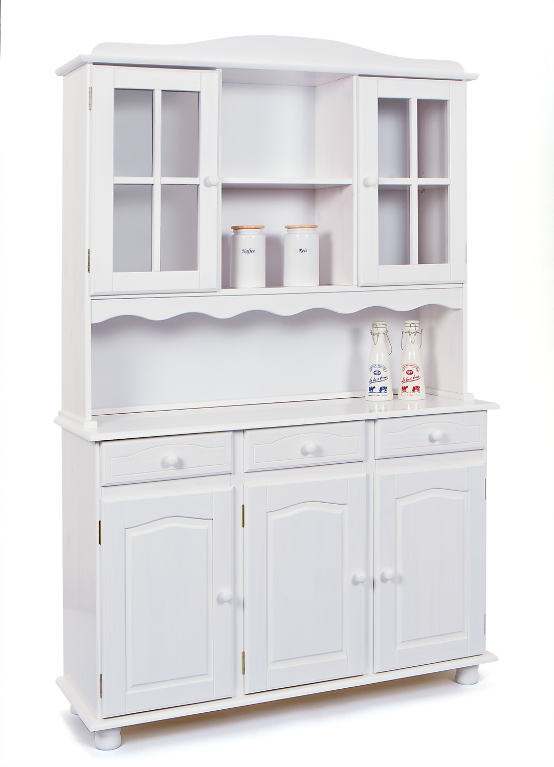 3 deuren, 2 glazen deuren, 3 laden, 2 open compartimenten. T: 32/43.