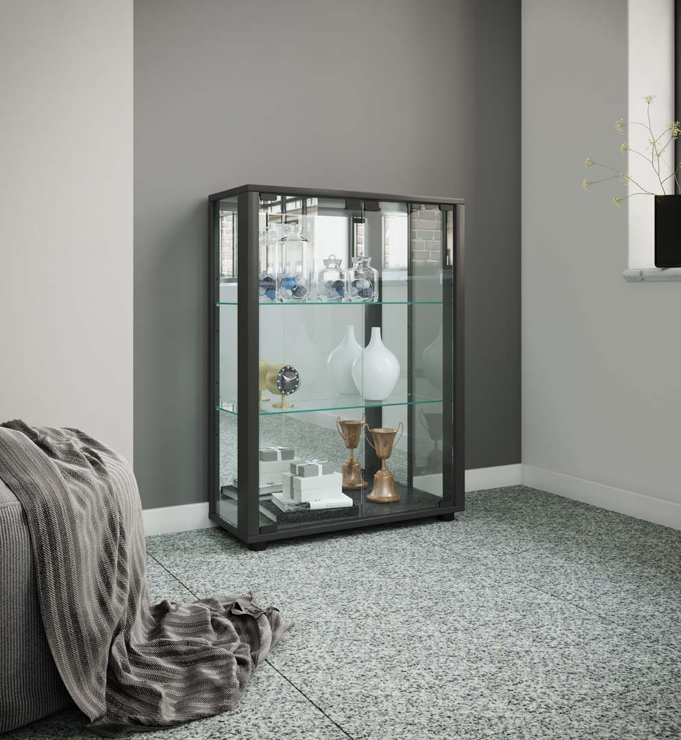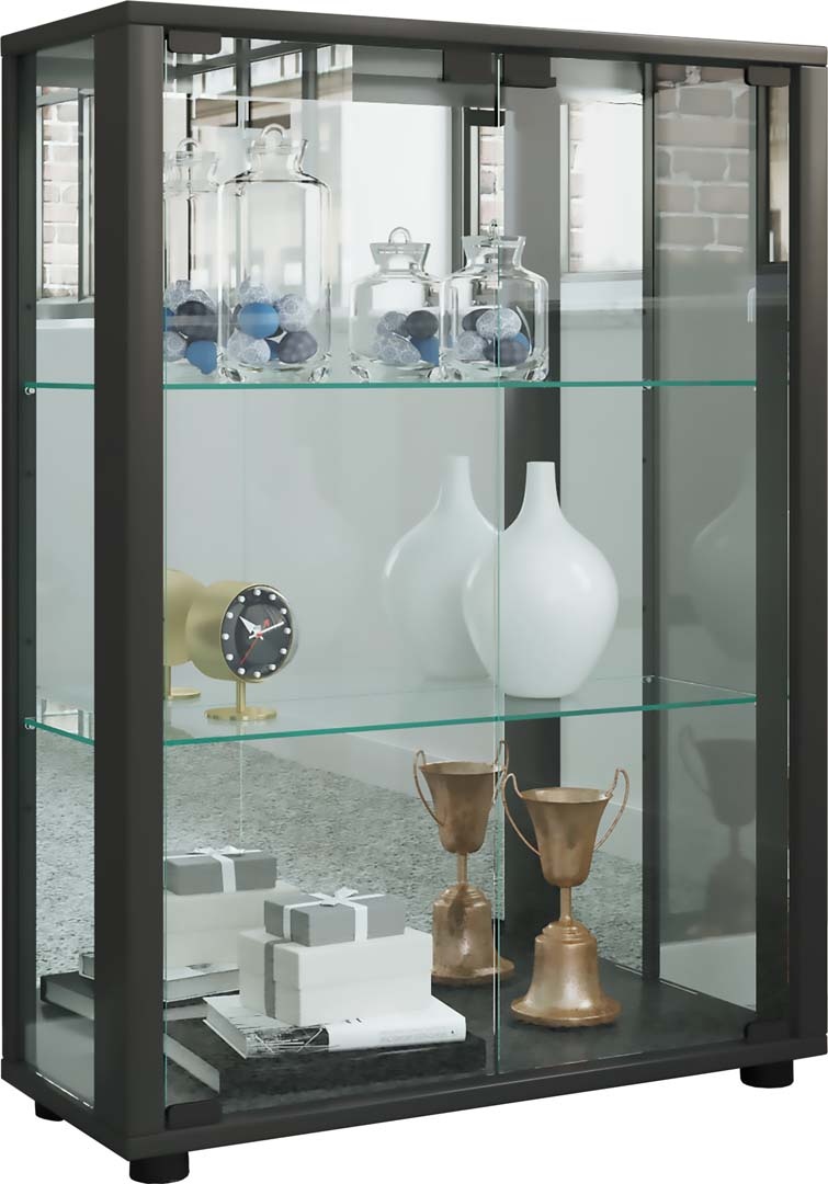 ebuy24 Sintalo vitrinekast met spiegel 2 glazen deuren Incl. LED-verlichting zwart.