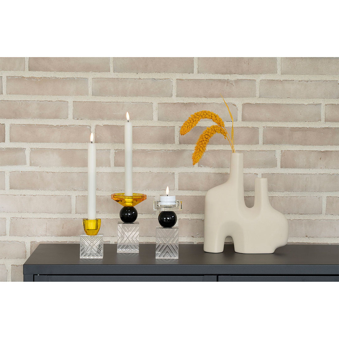 Deze unieke keramische vaas combineert artistiek design met functionaliteit. De organische, sculpturale vorm verschilt van traditionele vazen ??en voegt een modern en speels element toe aan elke ruimte. Met zijn twee afzonderlijke buisvormige openingen biedt de vaas de mogelijkheid om bloemen op een creatieve manier te schikken of kan hij op zichzelf staan ??als elegant designobject. De zachte, matte afwerking en de minimalistische kleur maken het een perfecte keuze voor moderne huizen die op zoek zijn naar een stijlvol en artistiek tintje.