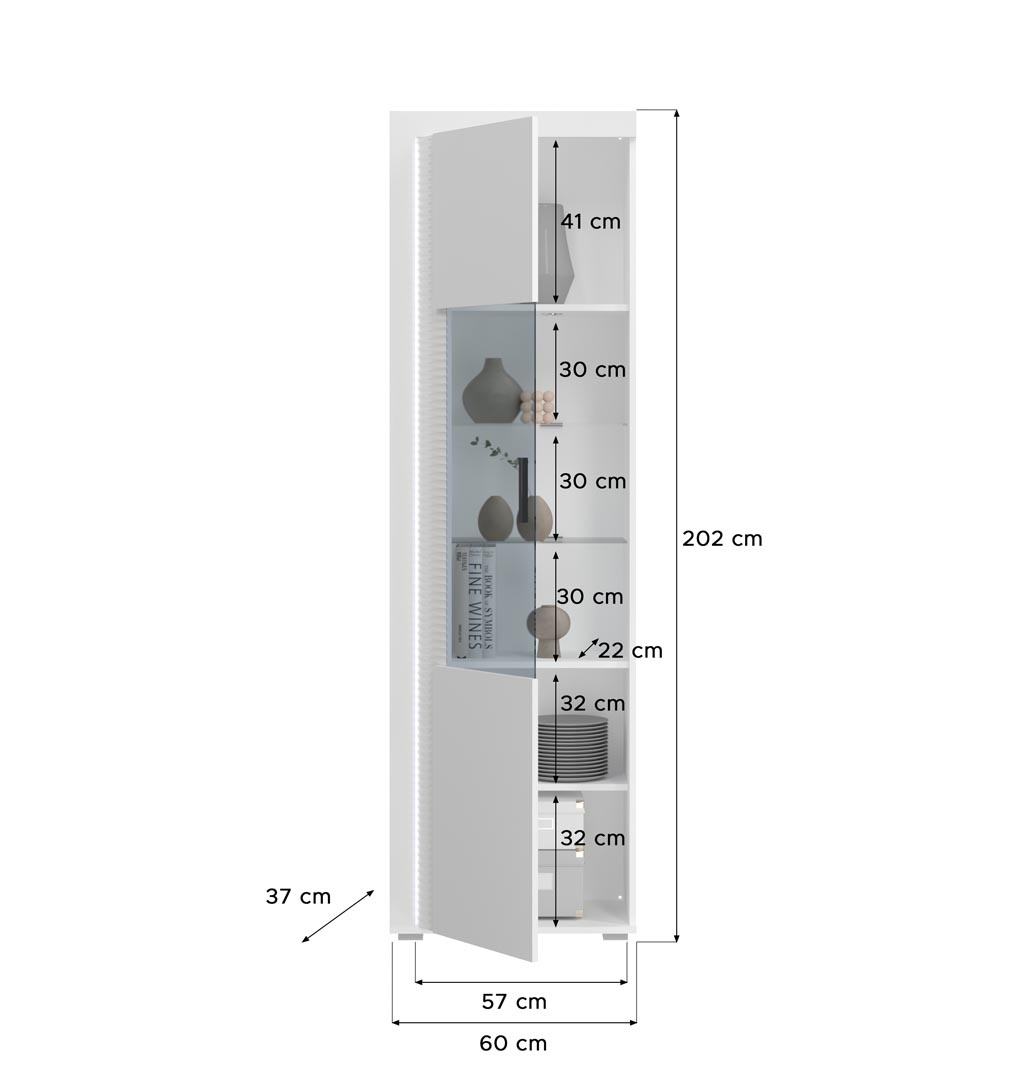 ebuy24 Skylight wandkast systeem 4 delen met licht hoog glans wit, wit, glas grijs.
