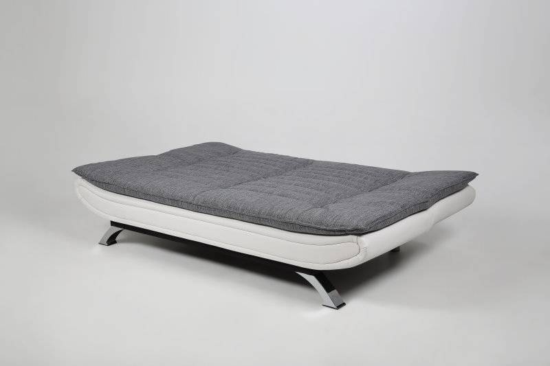 Slaapbank Fanny wit en lichtgrijs design. Wit kunstleder aan de onderzijde in combinatie met lichtgrijze stof boven: de ideale slaapbank met met een uitnodigend uiterlijk is de slaapbank Fanny! ...Lees uitgebreide product informatie