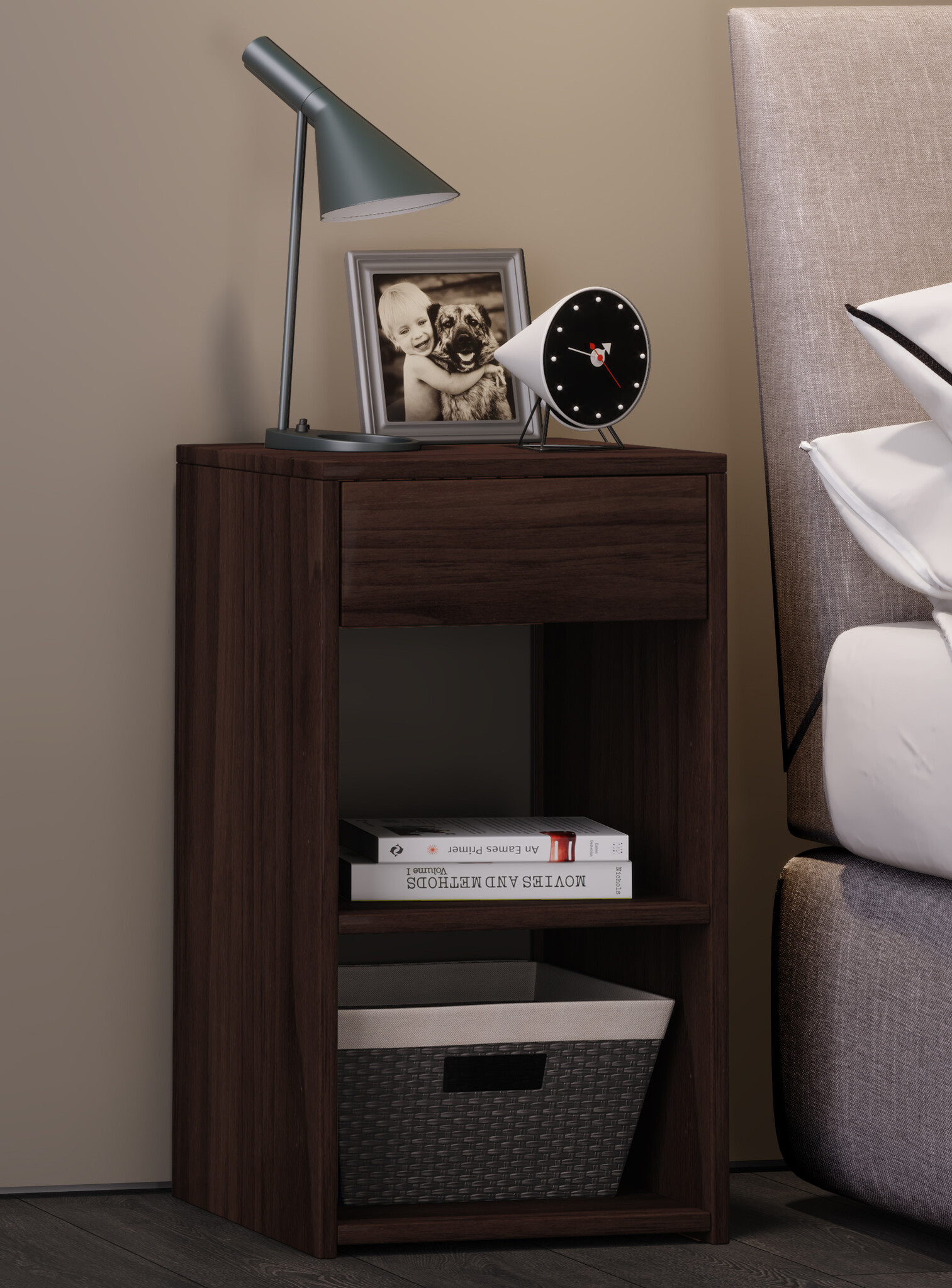 tom Sledo Maxi nachtkastje 1 lade, 2 plankenWalnoot.